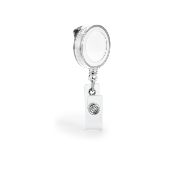 Porta crachá retrátil. Extensível até 900 mm. Com presilha metálica. ø32 x 9 mm