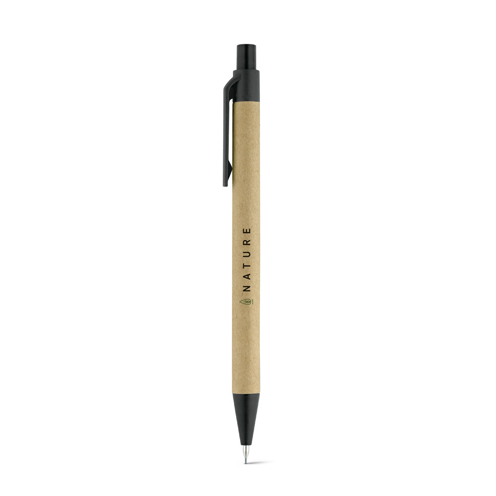 Conjunto de esferográfica com escrita em azul ou preto e lapiseira. Papel kraft. Com clipe e ponteira de plástico. Com bolsa em cartão. ø10 x 138 mm | Bolsa: 175 x 55 mm