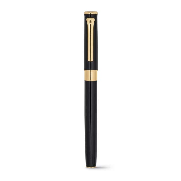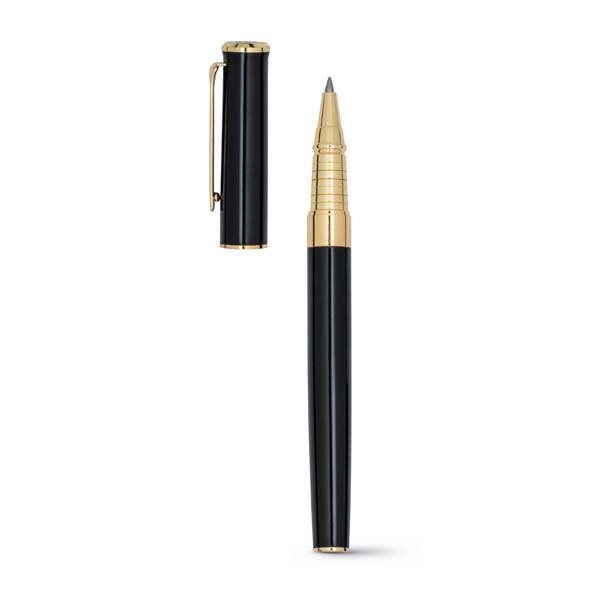 Conjunto de roller e esferográfica. Metal. Elementos com banho de ouro de 18 quilates. Esferográfica: 1,5km de escrita. Em estojo almofadado. ø12 x 136 mm | Estojo: 185 x 75 x 31 mm