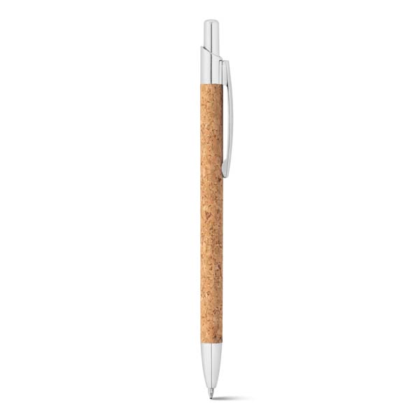Esferográfica. Cortiça e alumínio. 1,5km de escrita. Fornecida com embalagem presente em cartão. ø9 x 139 mm | Embalagem: 155 x 40 mm
