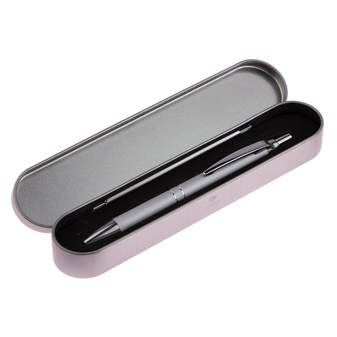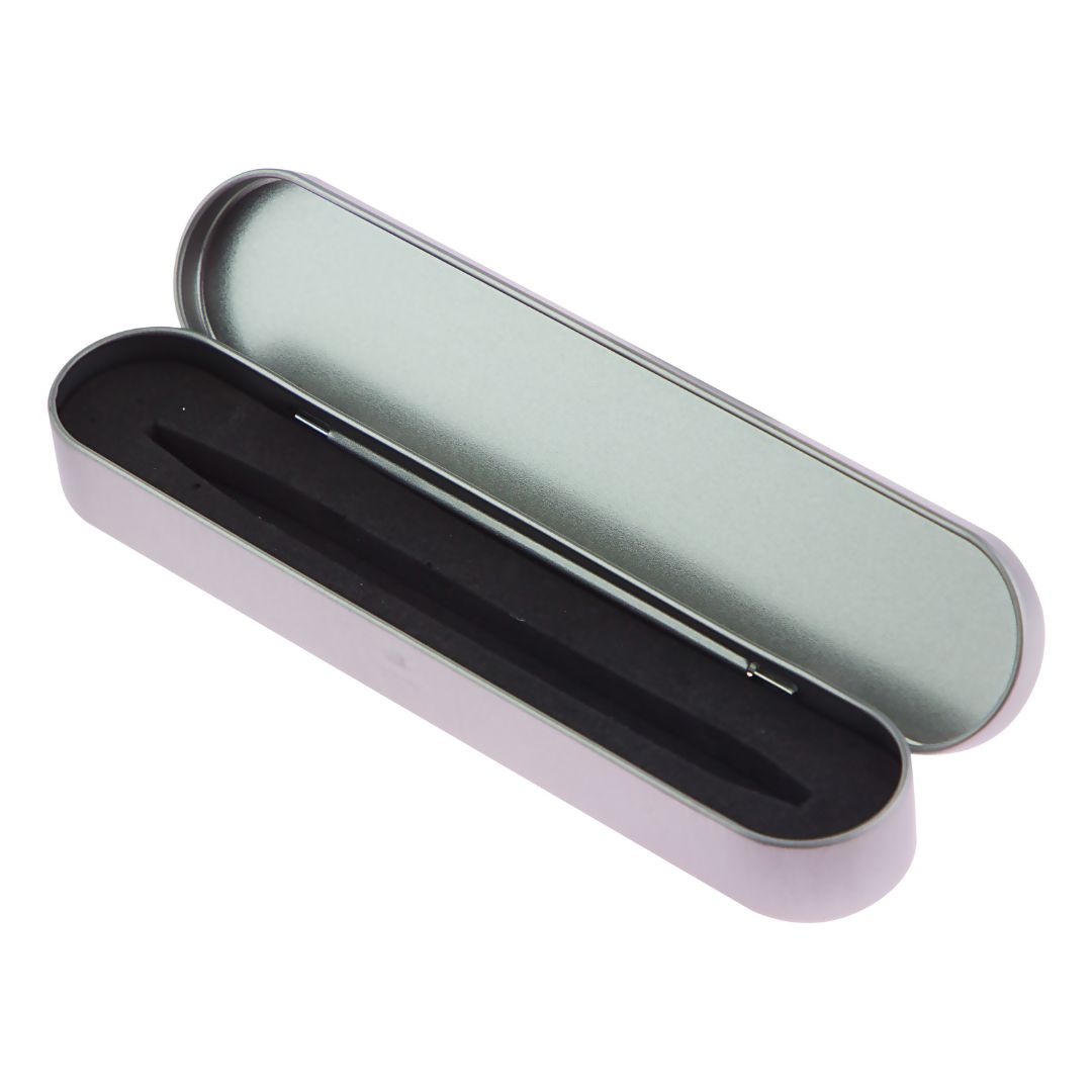 Estojo de metal para uma caneta com parte interna revestida de espuma. Acabamento escovado. Imagem de caneta no estojo meramente ilustrativa. Não acompanha caneta. Tamanho 17.7 × 3.7 cm