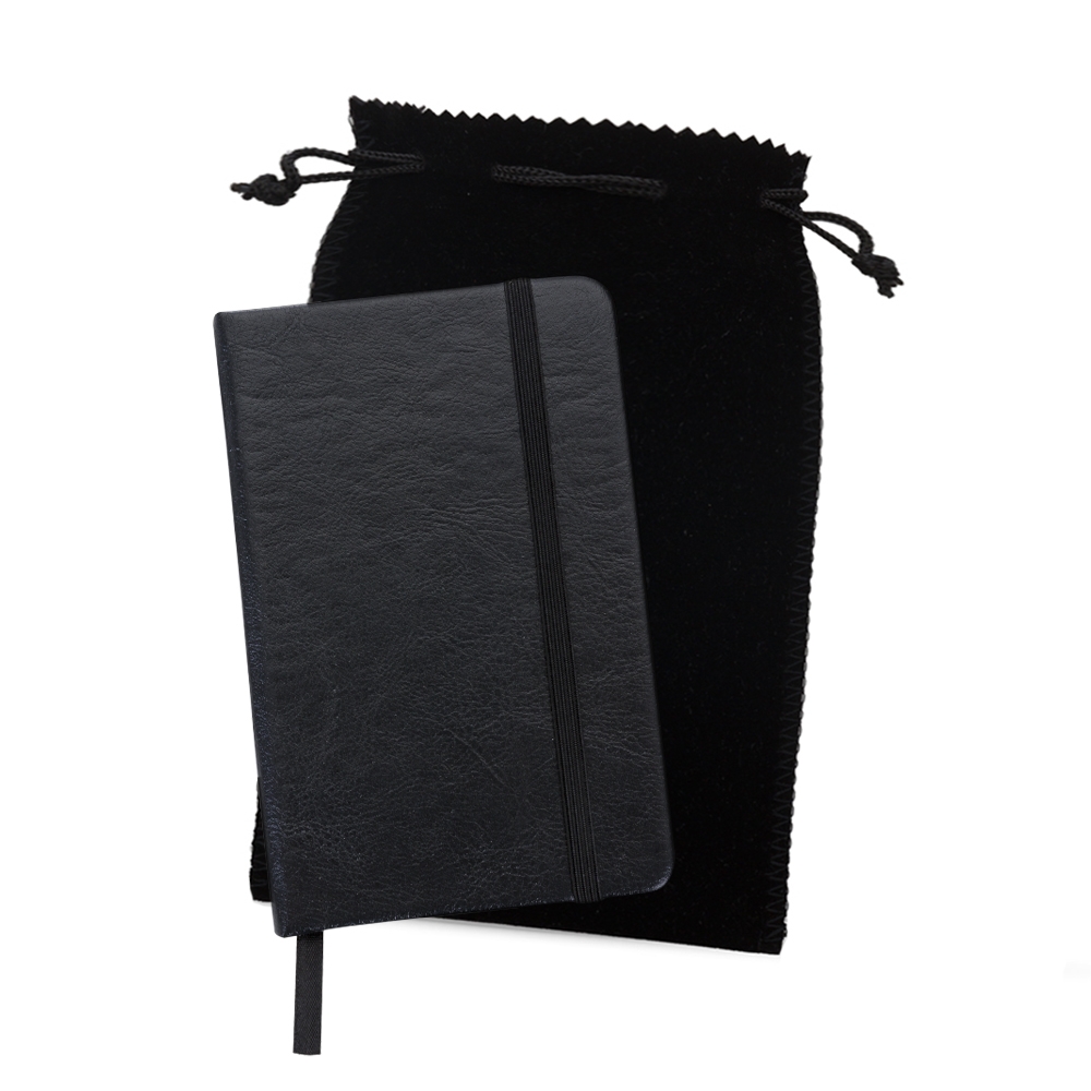 Veludo costurado de cordão duplo ajustável(não acompanha caderneta). Tamanho total aproximado (CxL): 21,3 cm x 14 cm