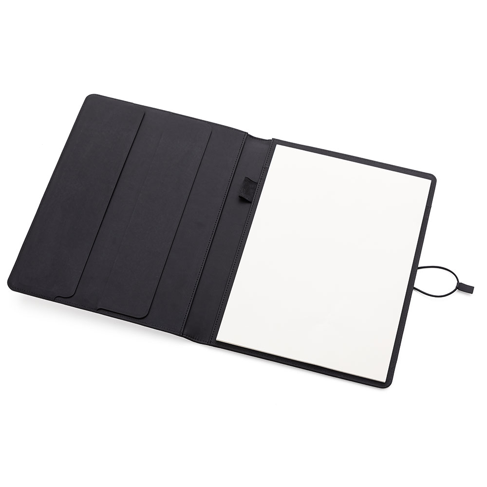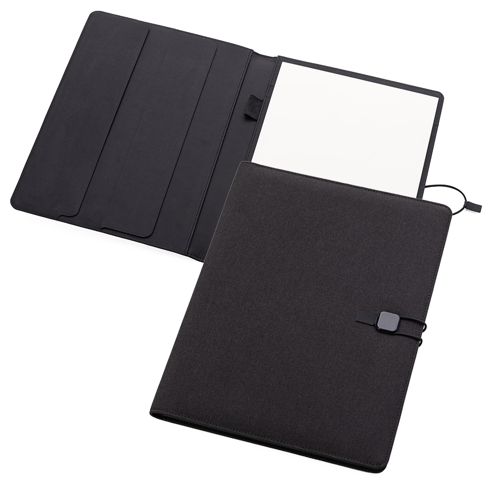 Pasta executiva com capa almofadada em tecido poliéster, contendo: