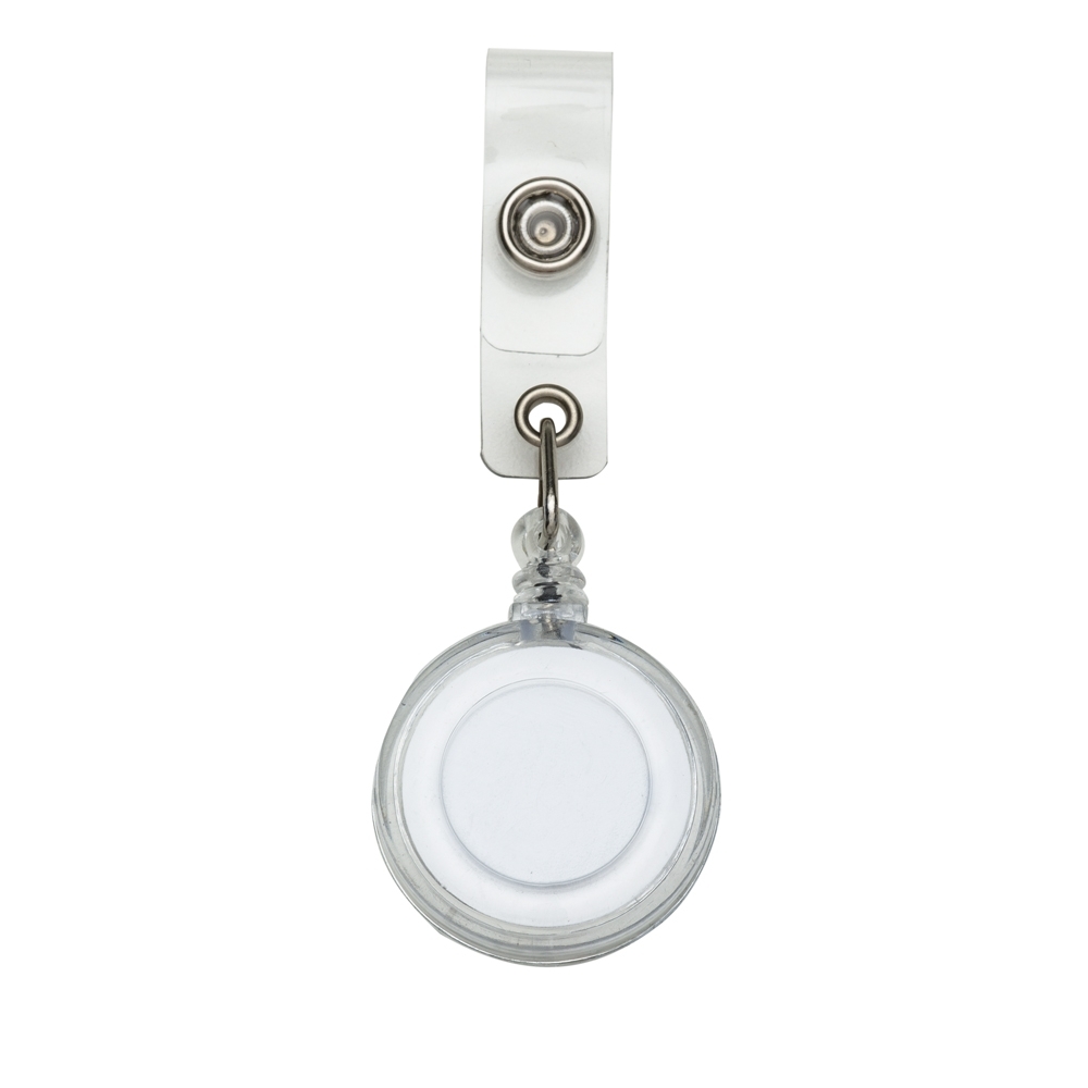 Porta crachá retrátil plástico, cores leitosas e translúcidas. Roller clip possui sistema extensor em nylon que após puxar é recolhido automaticamente. Possui presilha metálica na parte traseira e alça plástica com botão.