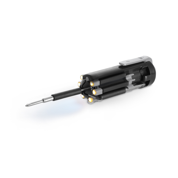 Kit de ferramentas. ABS. Com clipe, 6 LEDs e 5 chaves. Incluso 2 pilhas AAA. 90 x 30 x 35 mm