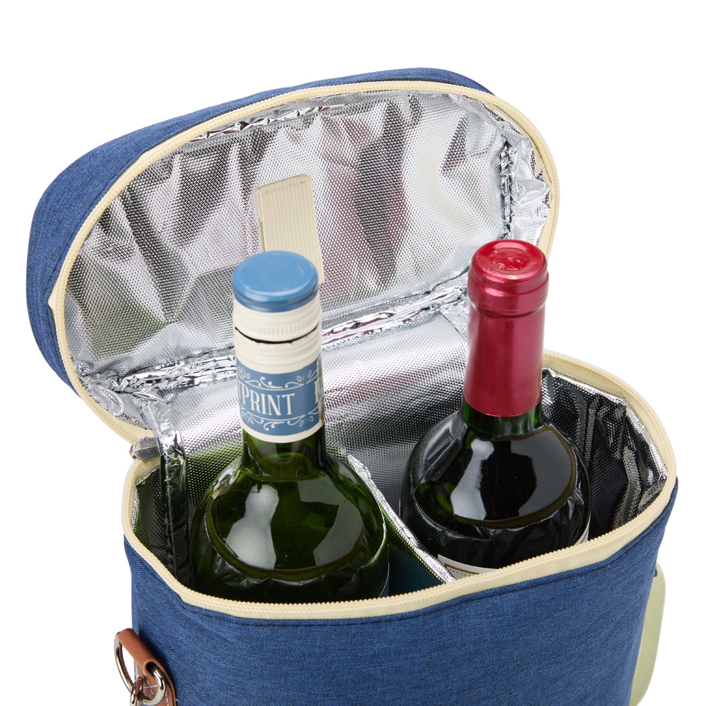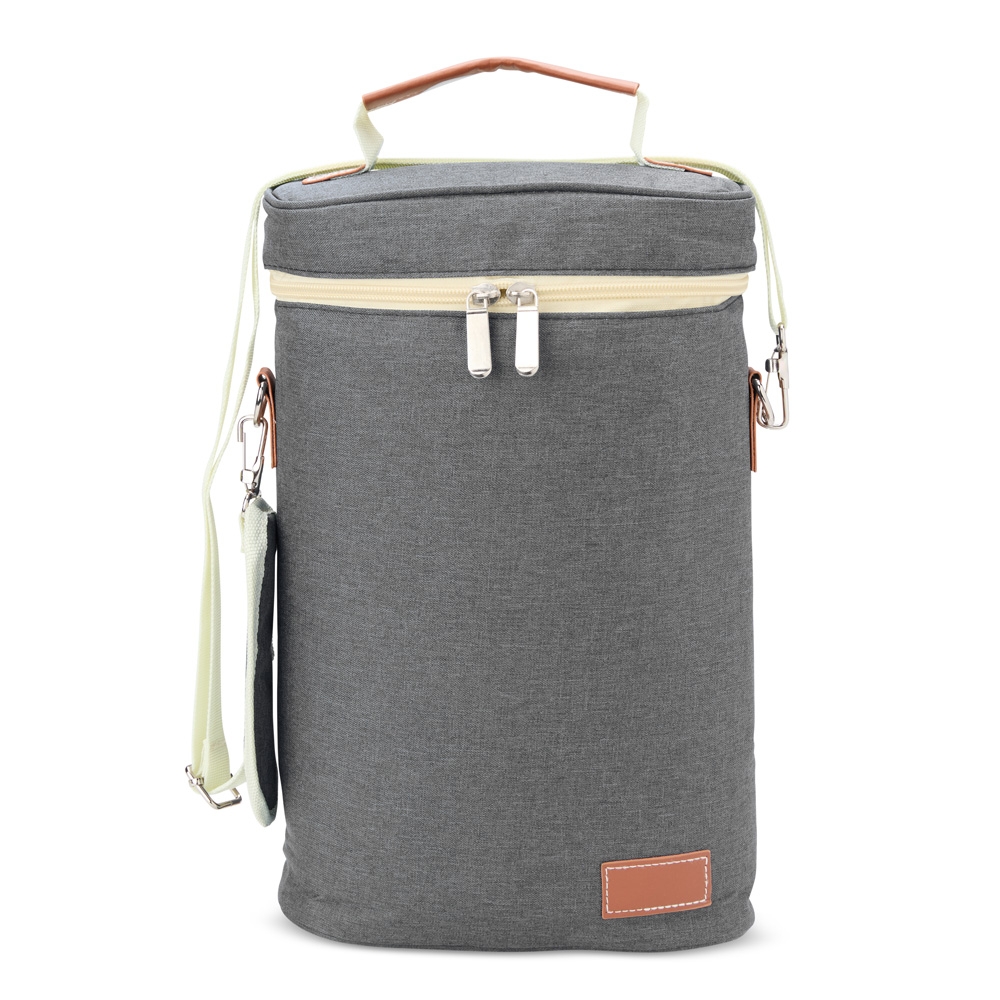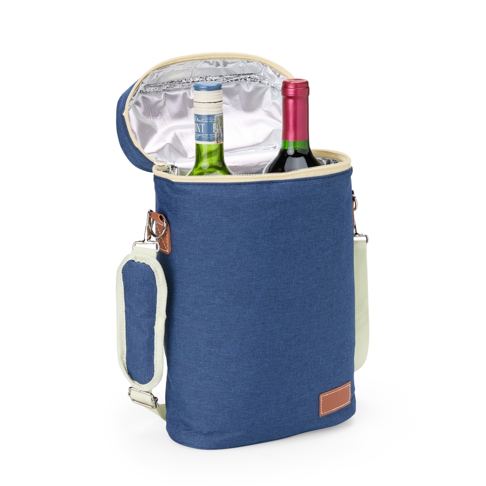 Descrição: Bebidas geladinhas e frescas por muito mais tempo! O nosso porta-garrafas térmico é excelente para garantir a temperatura das bebidas em qualquer lugar. Feito em nylon com detalhes em couro sintético, contém divisória integrada à bolsa. Ele comporta até duas garrafas e ainda conta com um suporte para abridor ou outros acessórios. Além disso, vem com alça de mão e alça de ombro ajustável e removível para maior conforto e praticidade. E para torná-lo ainda mais especial, oferece espaço para personalização, deixando-o único e exclusivo.