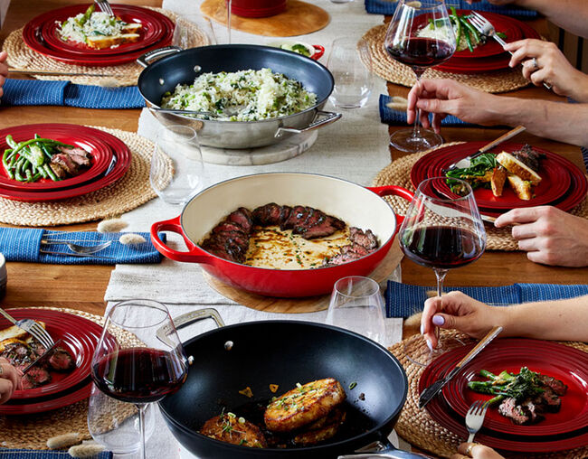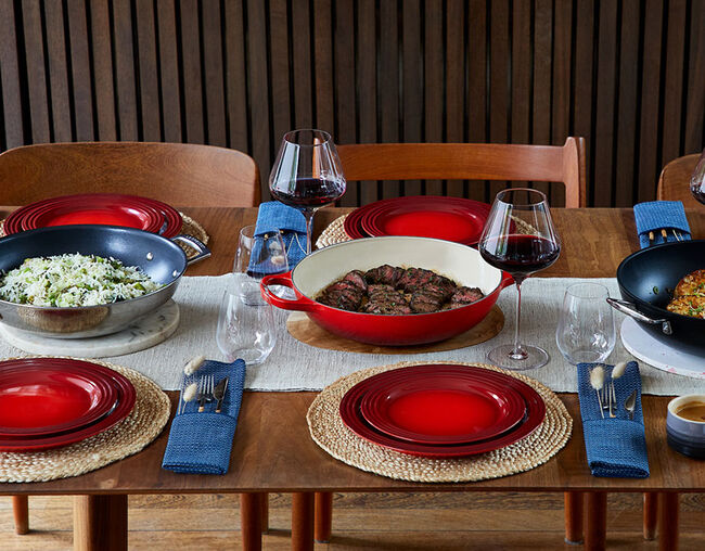 A Caçarola Buffet Signature da Le Creuset é funcional e bonita, leve-a do forno para a mesa como uma elegante peça de servir ou use-a como um acessório decorativo na cozinha. Feita com nosso lendário ferro fundido, ele tem as mesmas qualidades excepcionais de distribuição e retenção de calor para manter o sabor e manter os pratos quentes ou frios na mesa.