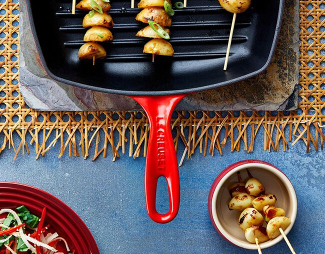De vegetais saborosos a bifes, frango e camarão de dar água na boca, a Grelha Quadrada produz um sabor delicioso como o de uma grelha de churrasqueira. Suas ondulações permitem que a gordura e o óleo escorram, e os bicos em duas laterais permitem verter líquidos sem derramar.