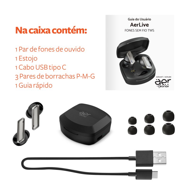 home / produtos / Tecnologia / Fone de Ouvido / AerLive – Fones sem fio TWS Perto - C2AER12BK