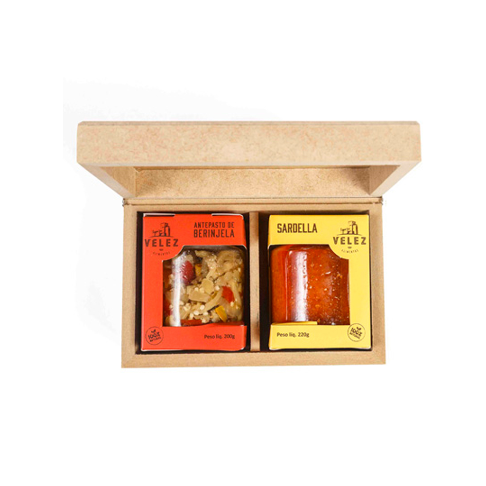 home / produtos / Gourmet / Kit 2 Antepastos Velez na caixa de MDF - C2APE079