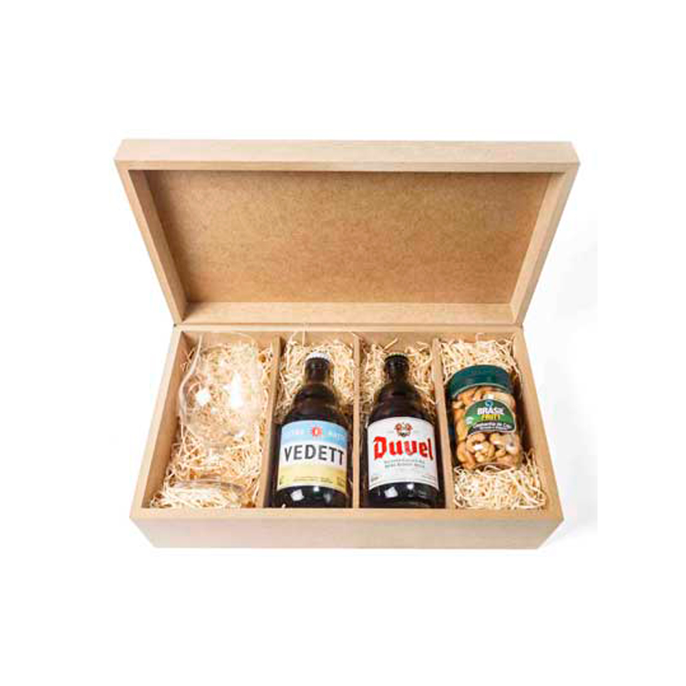 home / produtos / Gourmet / Kit Cerveja com taça, nuts e 2 Cervejas na caixa de MDF - C2CER148