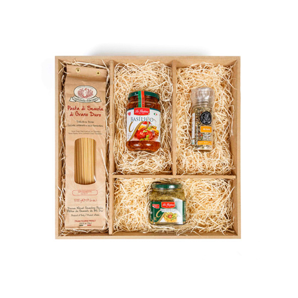 home / produtos / Gourmet / Kit Massa, Molho, Aperitivo e Moedor na caixa de MDF - C2MAS118