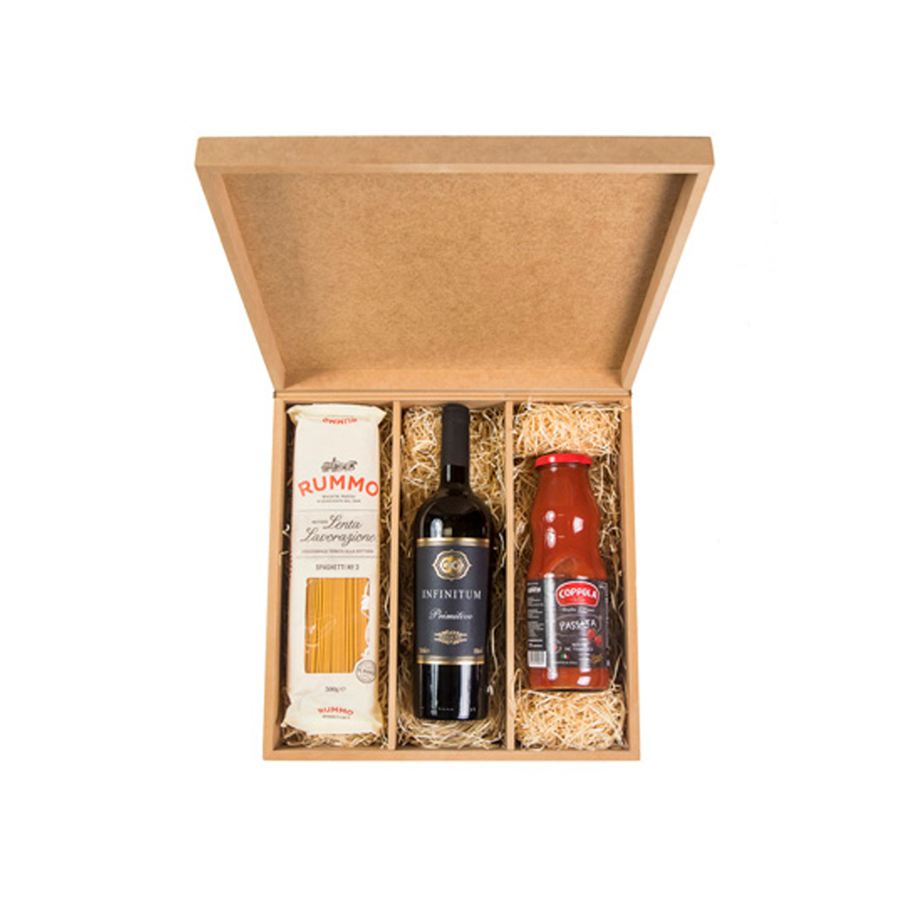 home / produtos / Gourmet / Kit Massa, Molho e Vinho na caixa de MDF - C2MAS124