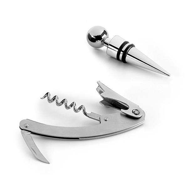 Conjunto para vinho. Saca-rolhas com canivete de sommelier e rolha. Fornecido em caixa de oferta. 103 x 133 x 28 mm