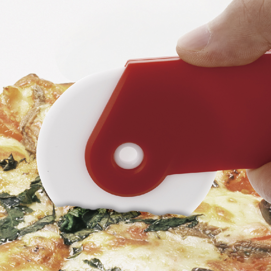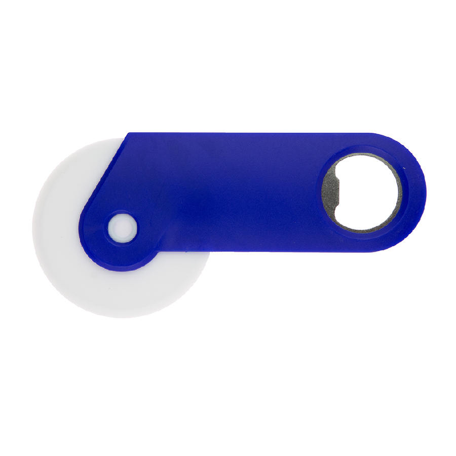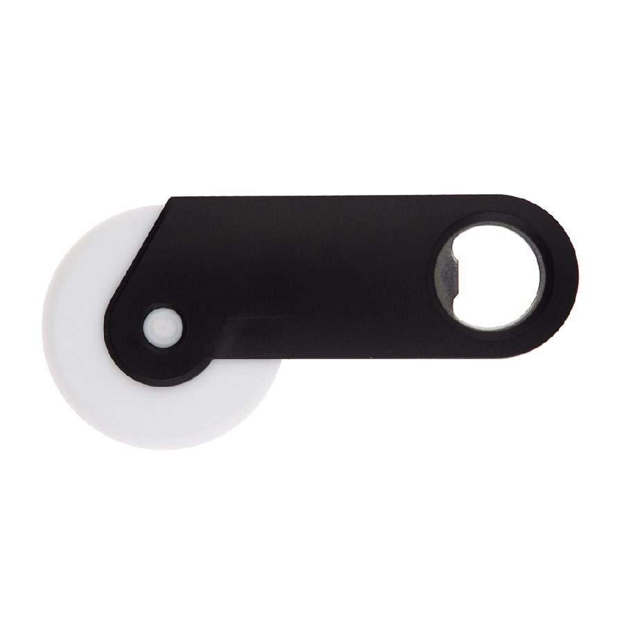Cortador de pizza em plástico resistente e abridor de garrafa.
