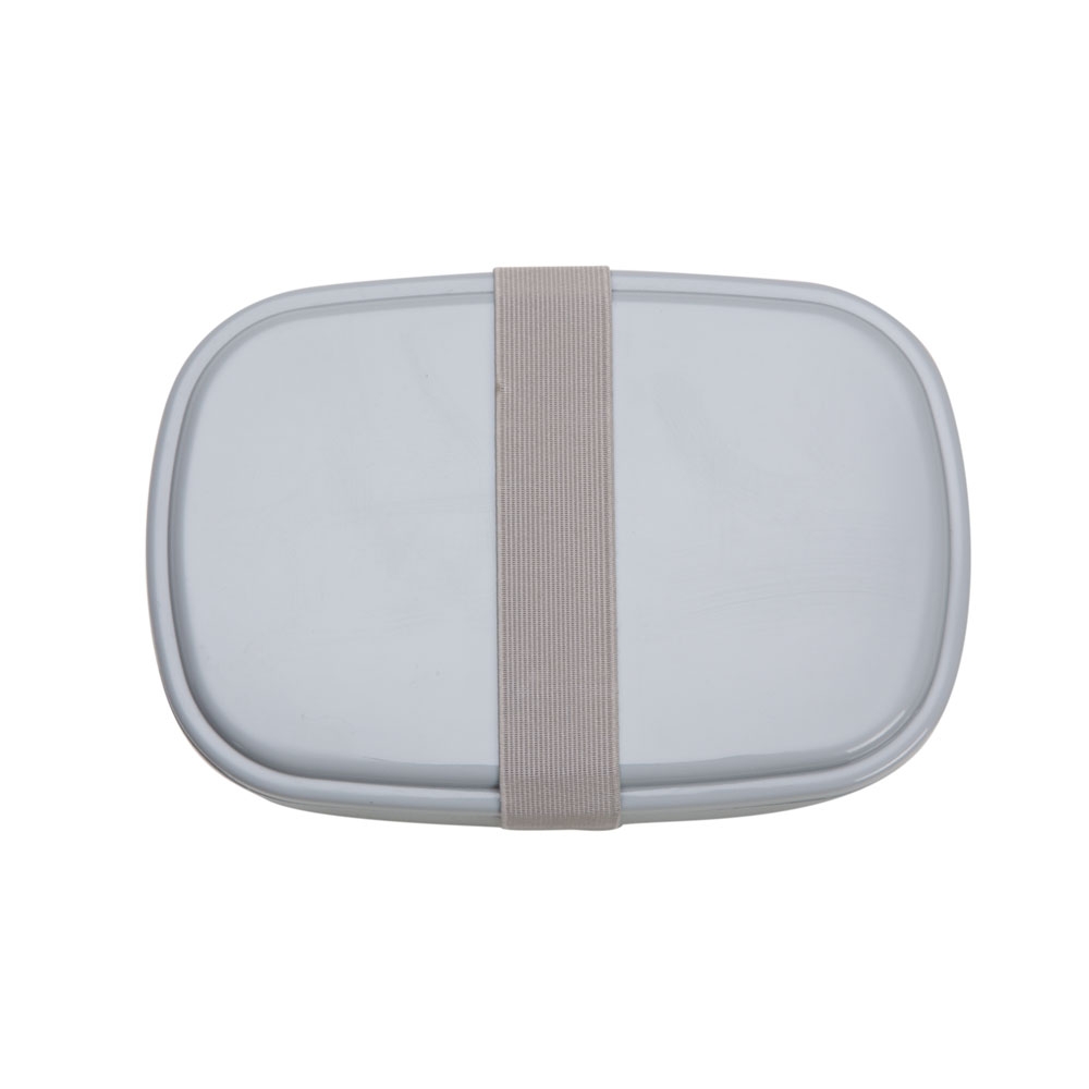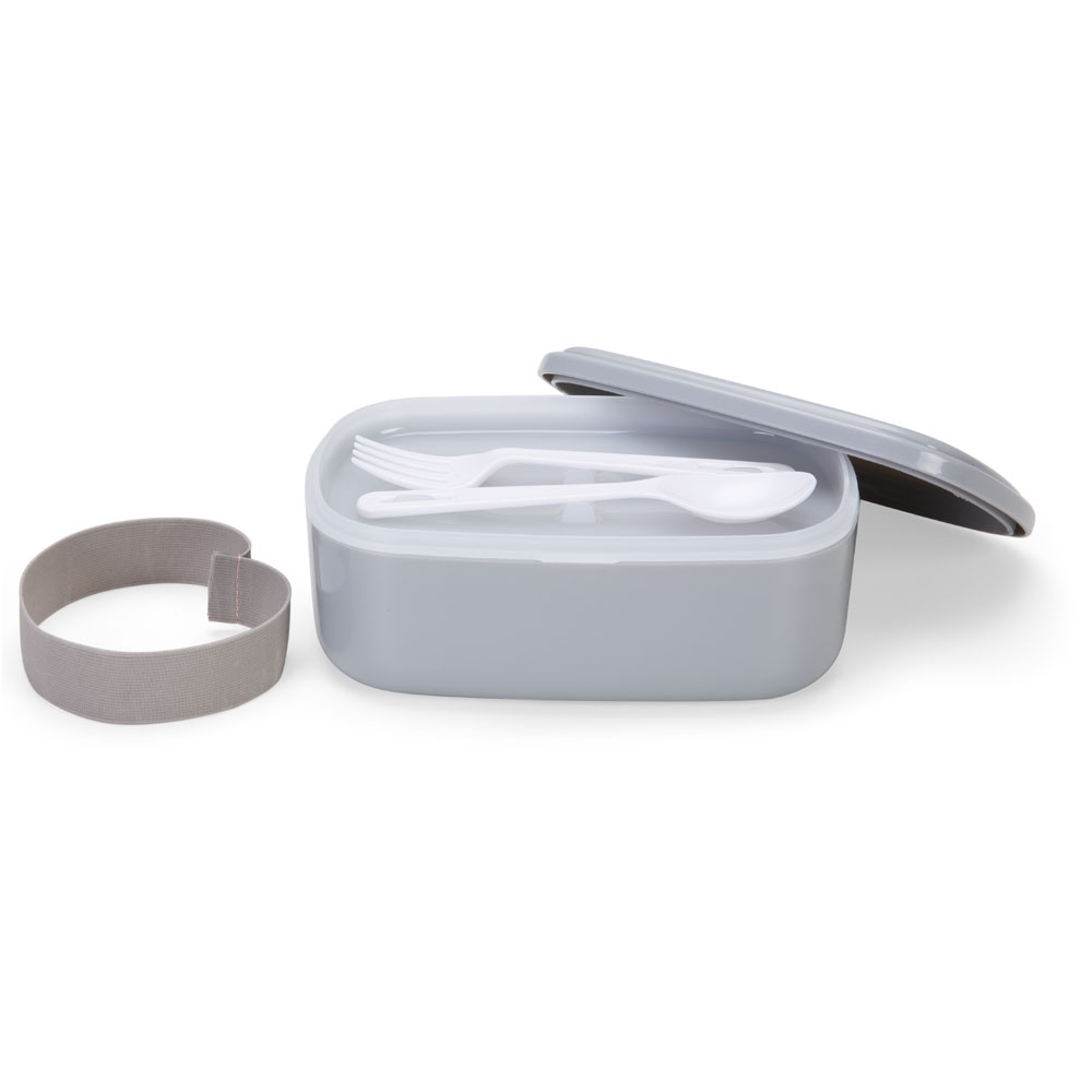 Marmita de plástico com garfo, colher e dois compartimentos. Possui elástico de nylon pra travar os compartimentos, acompanha talheres que se encaixam na tampa plástica do compartimento inferior. Produto ideal para lanchar em parques, trabalho, escola; desfrute sua comida caseira sem riscos de vazamento no transporte.