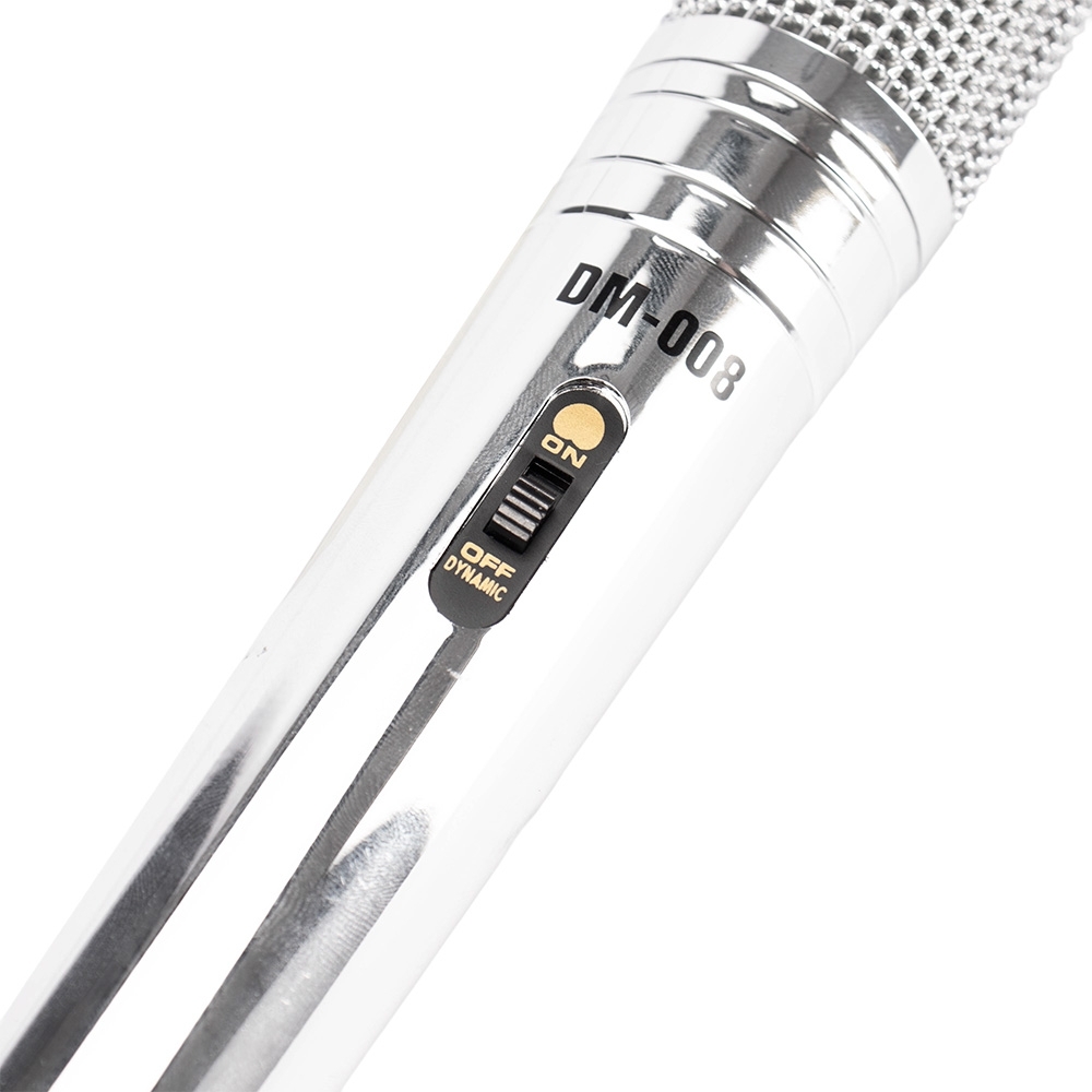 Descrição: Microfone dinâmico unidirecional com estrutura leve em alumínio e malha de proteção metálica. Conta com chave liga/desliga na parte frontal. Acompanha cabo XLR-P10 com 4 metros de comprimento.