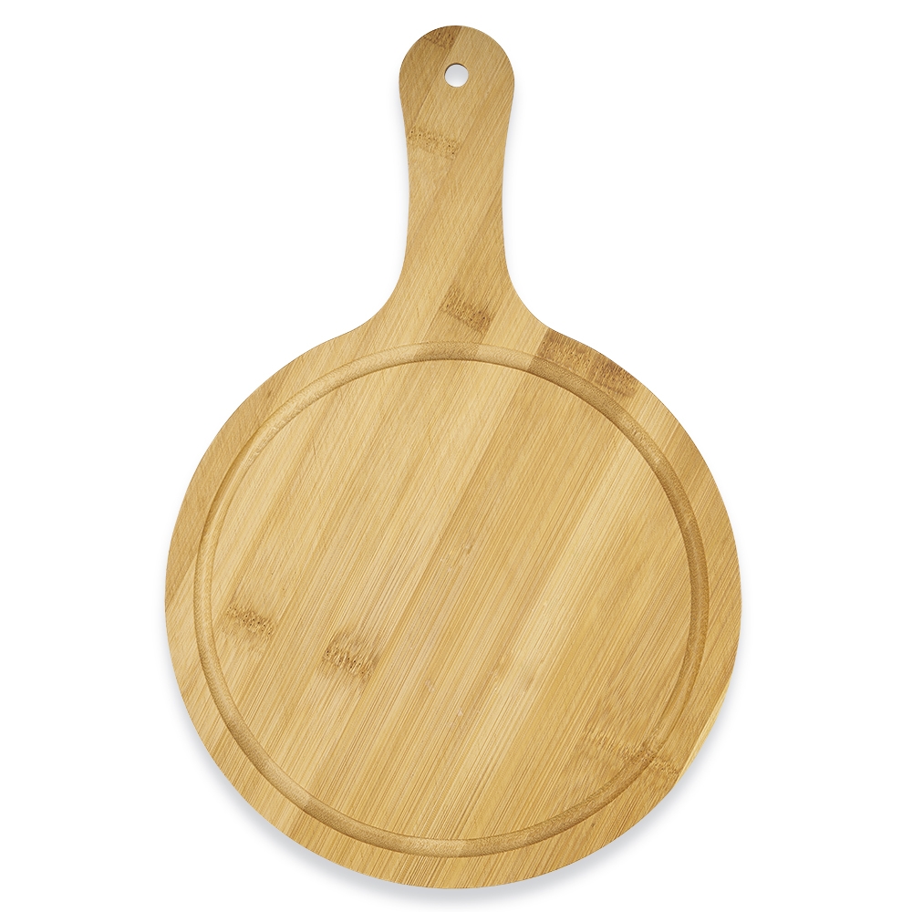 Descrição: Tábua de bambu média com canaleta e cabo.