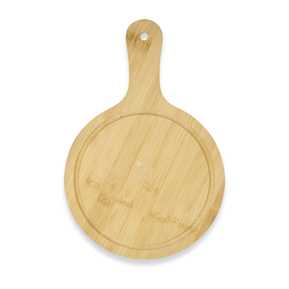Descrição: Tábua de bambu pequena com canaleta e cabo.