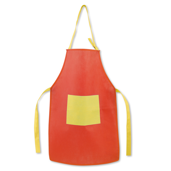 Avental para criança. Non-woven: 80 g/m². Ajustável. Com 1 bolso. 400 x 600 mm | Bolso: 200 x 150 mm