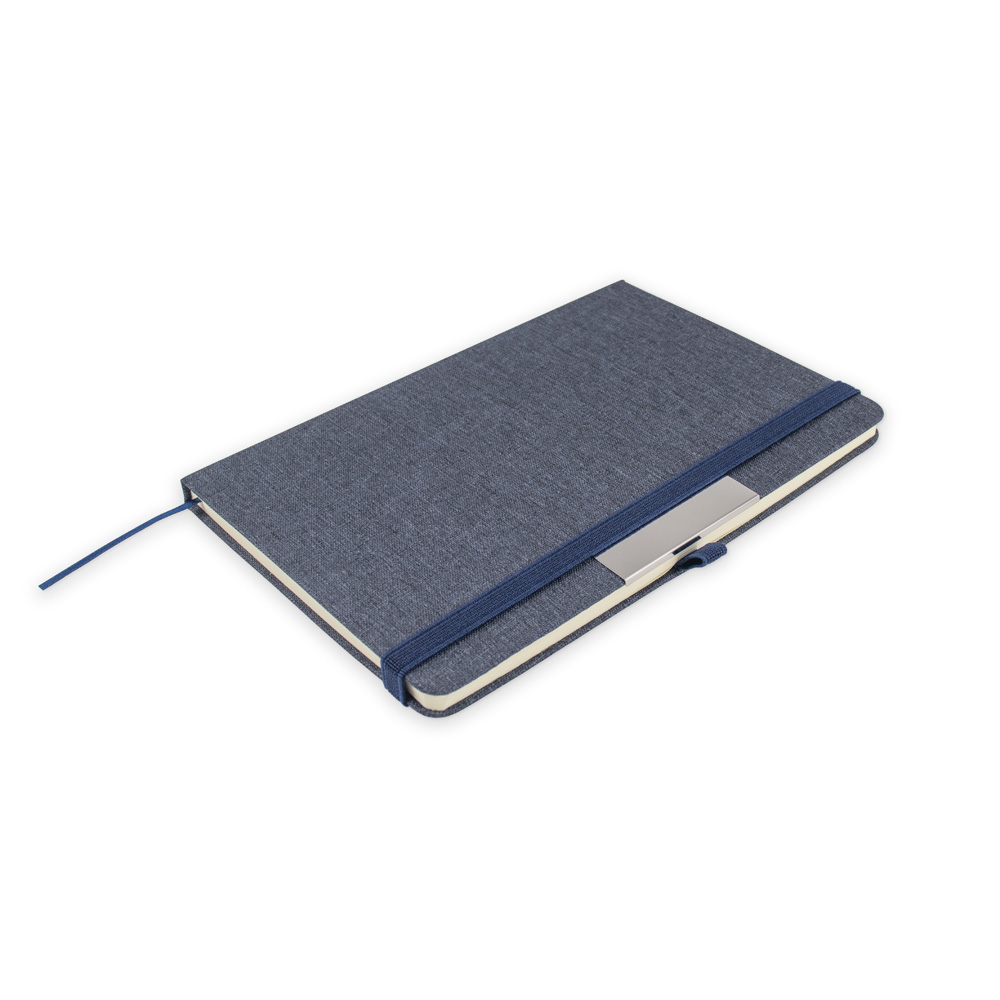 O caderno de anotações é feito de PET Reciclado, em capa dura com miolo 80 folhas pautadas.