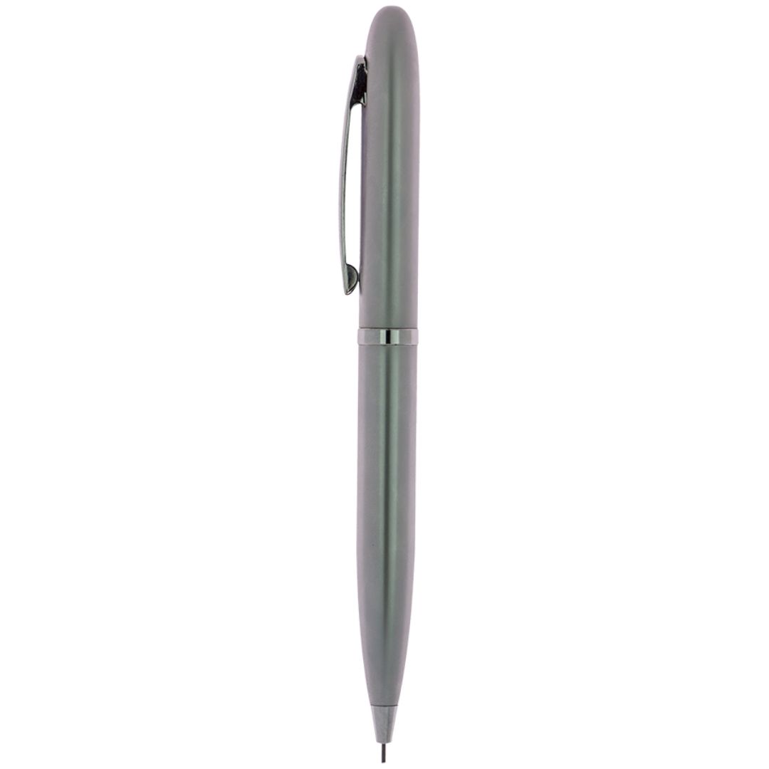 Lapiseira de metal corpo todo prata, acionamento giratório, grafite 0.9. Tamanho 13,5 cm.