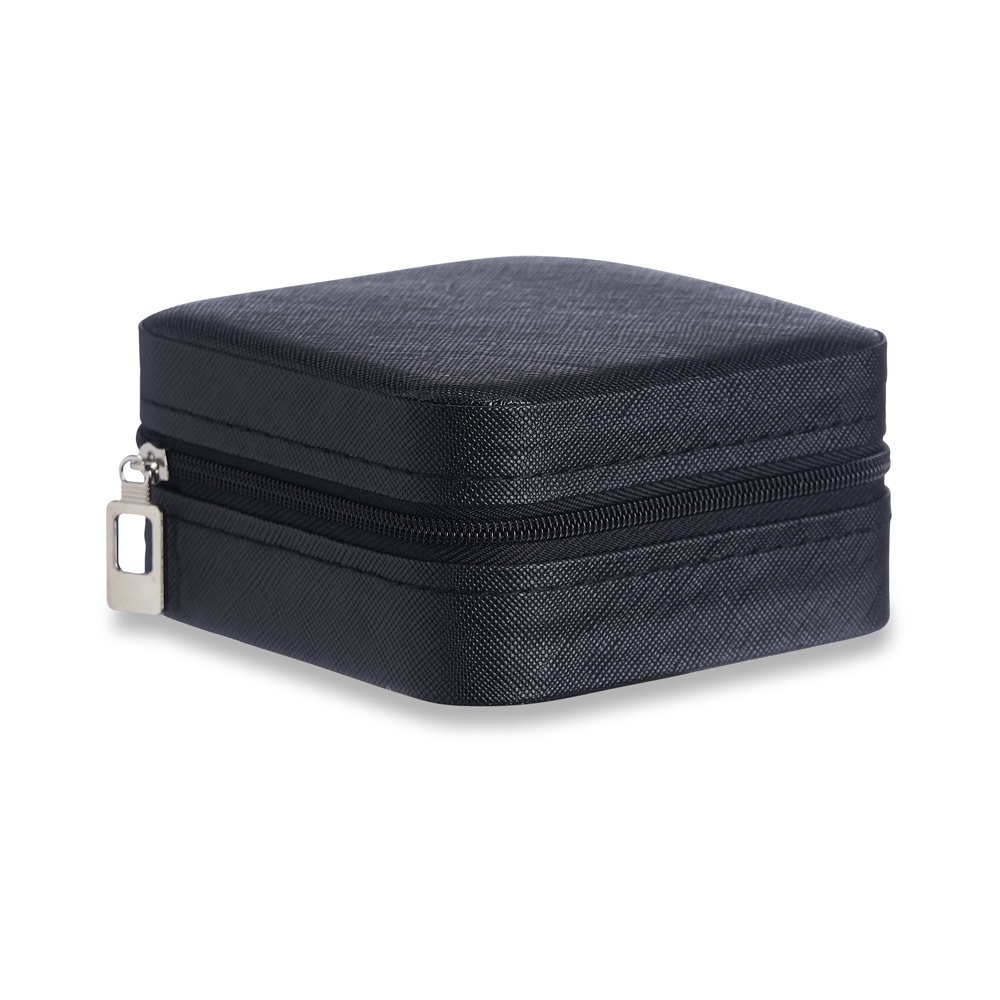 Descrição: Porta joias de material sintetico (imitação de couro) com revestimento aveludado. Possui compartimentos internos para anéis, brincos, pulseiras e colares.