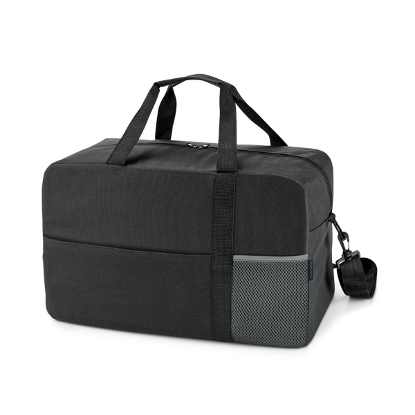 Bolsa esportiva. 600D. Fundo com placa semi-rígida. Bolso frontal com fecho e bolso em tela. Squeeze não incluso. 450 x 280 x 220 mm