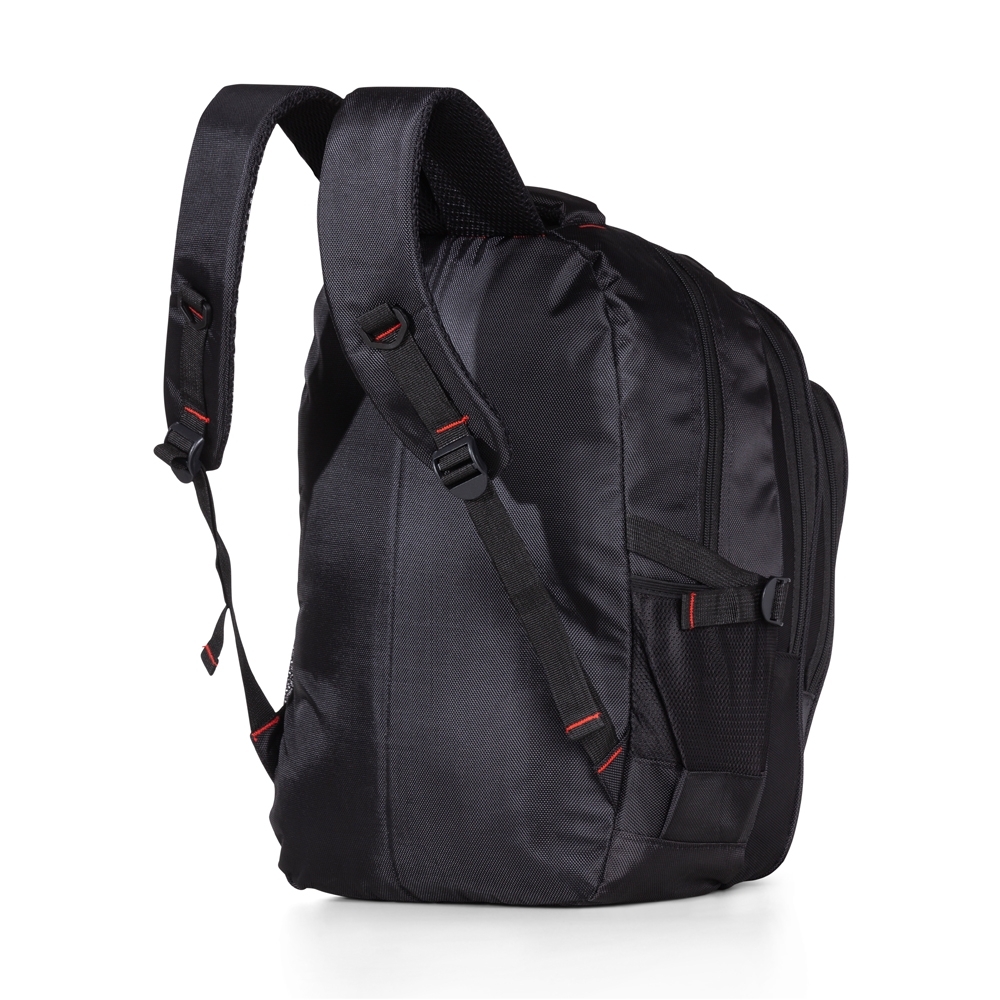 Mochila de nylon com compartimento para notebook. Compartimento grande com bolso interno para notebook 15.6 polegadas, dois compartimentos medianos, compartimento frontal e bolsos laterais de nylon. Possui duas alças de mão, sendo uma em nylon e outra com revestimento de espuma,alças laterais e alças para costa ajustáveis.