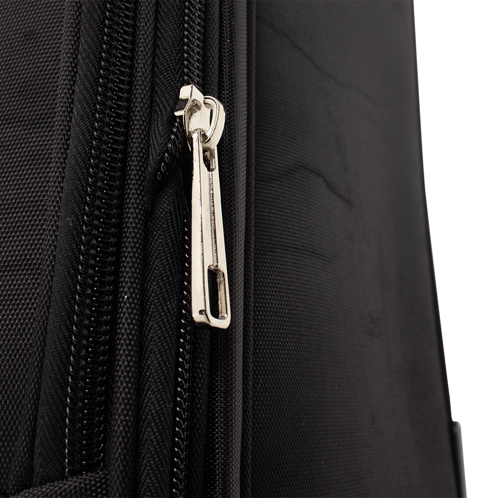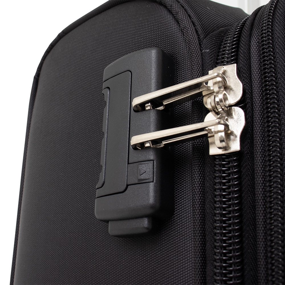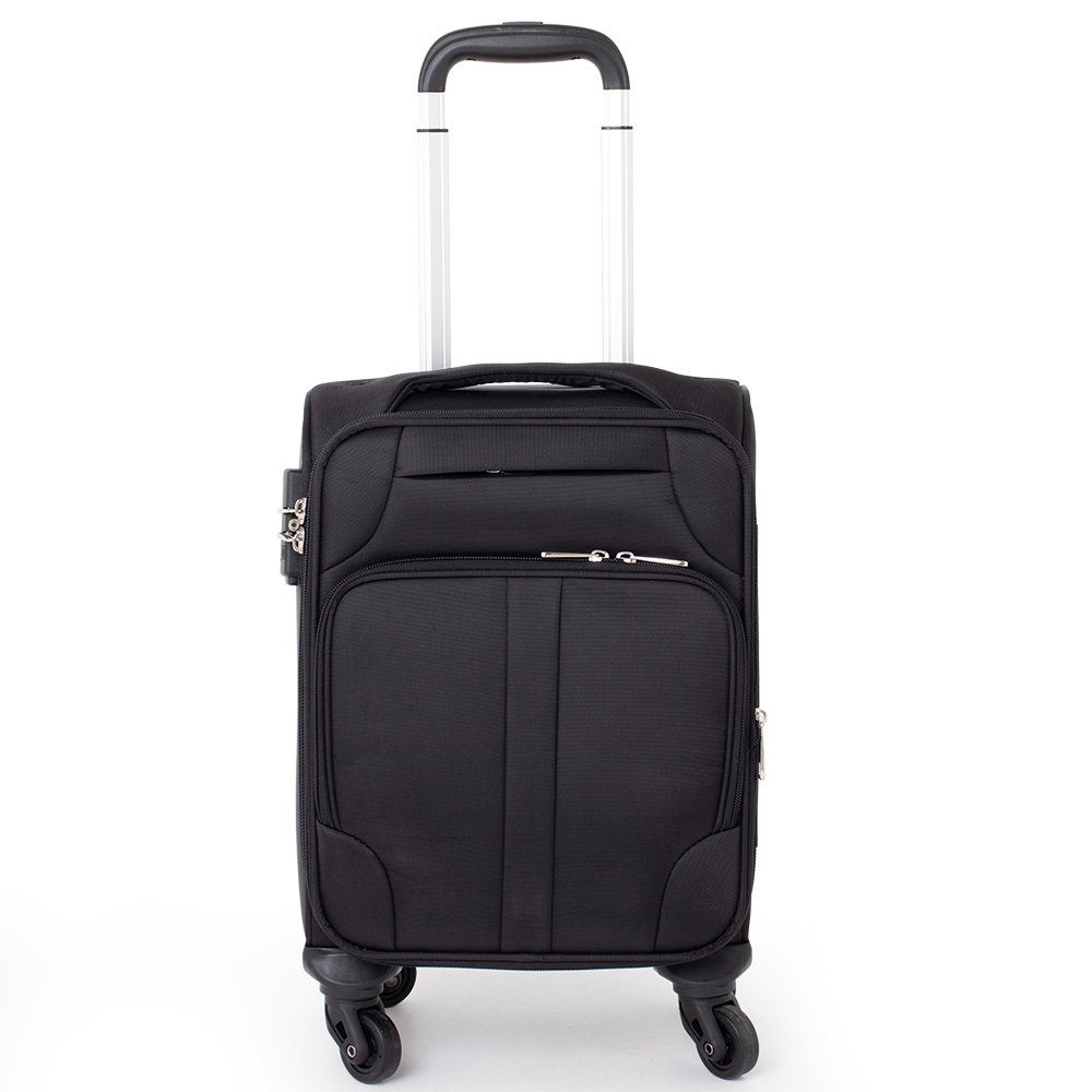 Descrição: Mala de bordo 30 litros com padrão ANAC (Agência Nacional de Aviação Civil), confeccionada em poliéster de alta qualidade, com cadeado numérico TSA. Possui etiquetas de identificação embutidas na mala, sendo uma integrada ao cadeado e outra na parte de trás da mala, acoplada por estojo em couro sintético. Três compartimentos, bolso telado, cinta compressora para roupas, alça de mão em poliéster, puxador retrátil com regulagem de tamanho, zíper expansível e quatro rodinhas 360º.