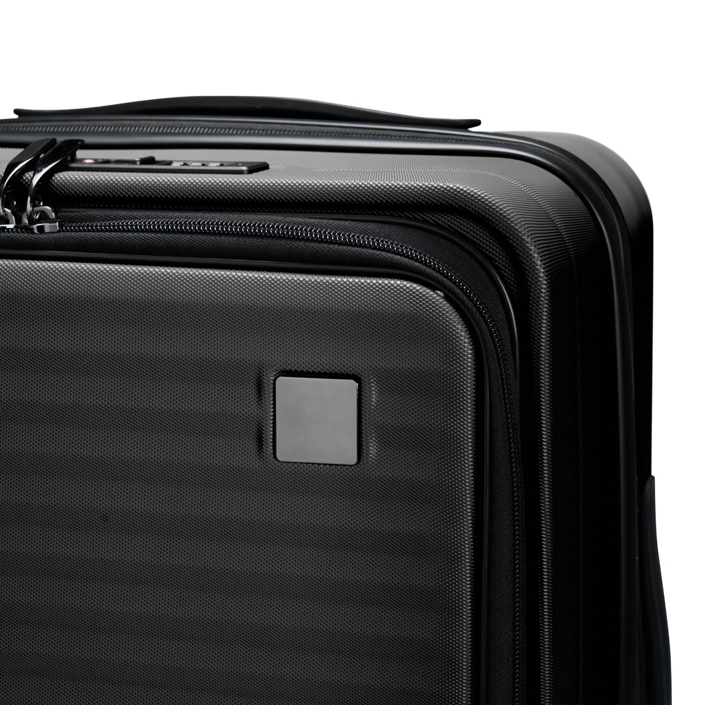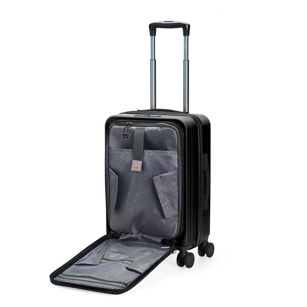 Descrição: Mala de bordo 32 litros, resistente e funcional! Produzida em plástico ABS, conta com cadeado numérico TSA embutido para mais segurança. Seu design inteligente traz abertura frontal com bolso para notebook de até 15.6, além de divisórias internas com zíperes e cinta compressora para roupas. Precisa de mais espaço? O zíper externo expansível se encarrega de ampliar a capacidade da mala. Para facilitar o transporte, possui puxador retrátil de 3 estágios, duas alças de mão, apoios e ganchos laterais e rodinhas 360º, proporcionando mobilidade total. Acompanha plaquinha metálica grafite personalizável.
