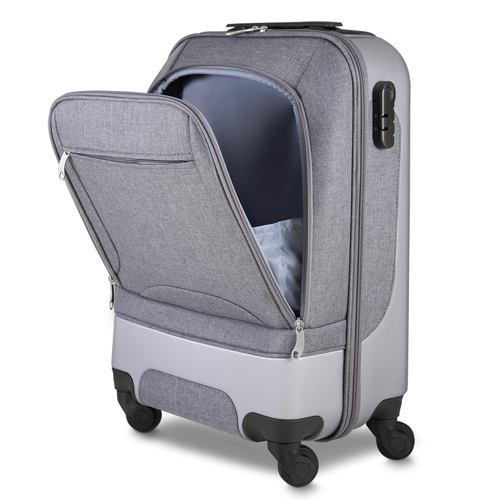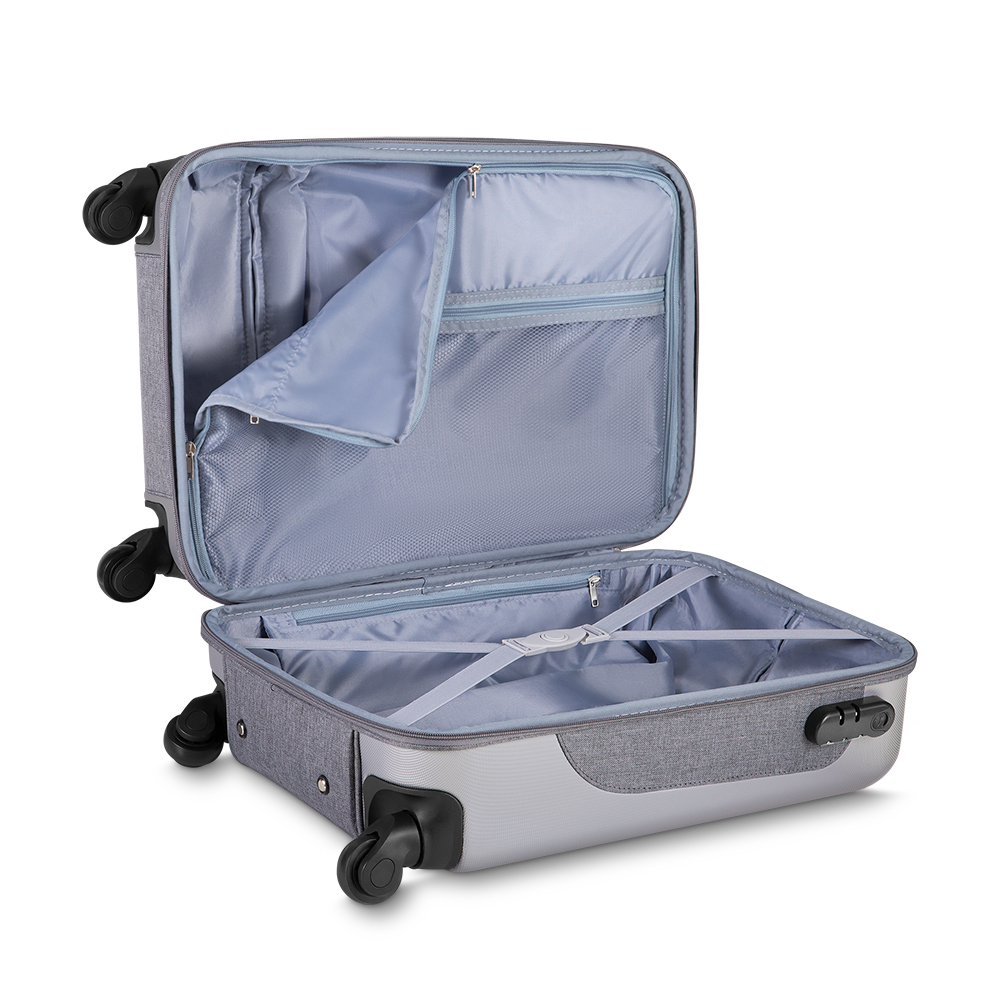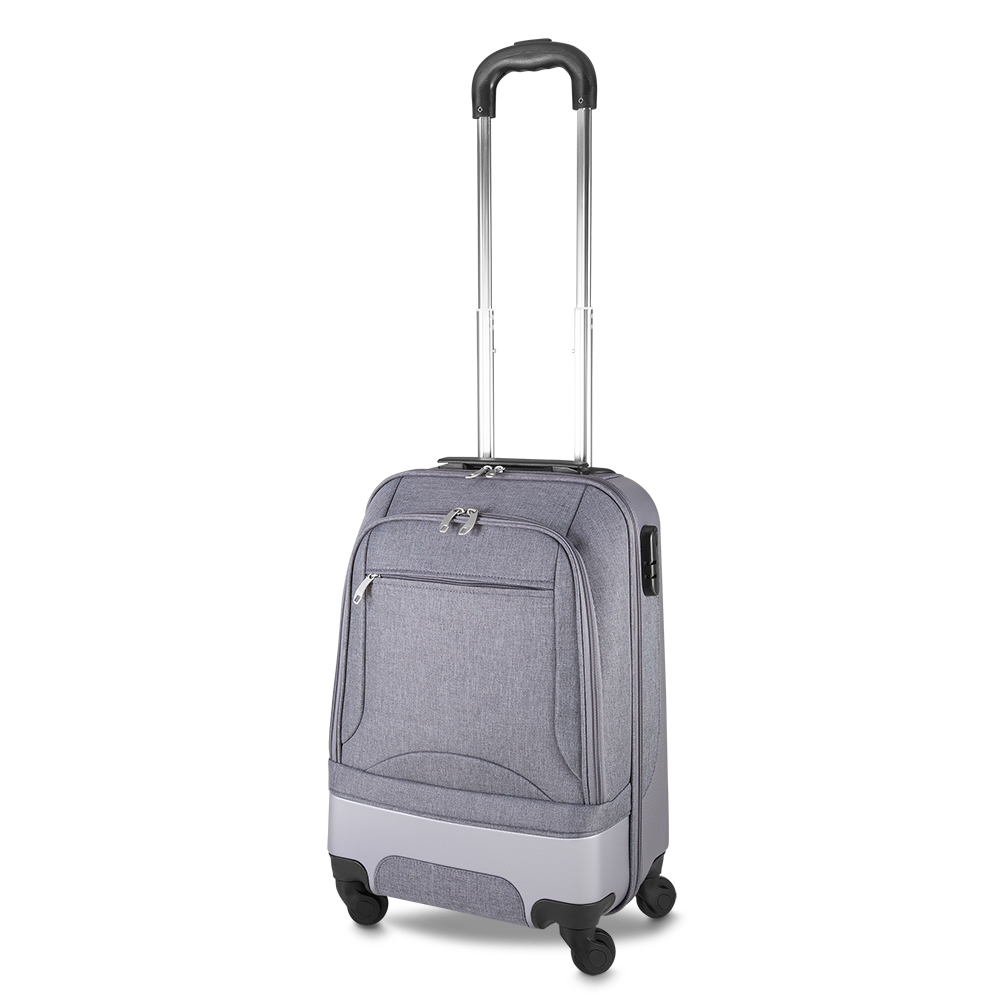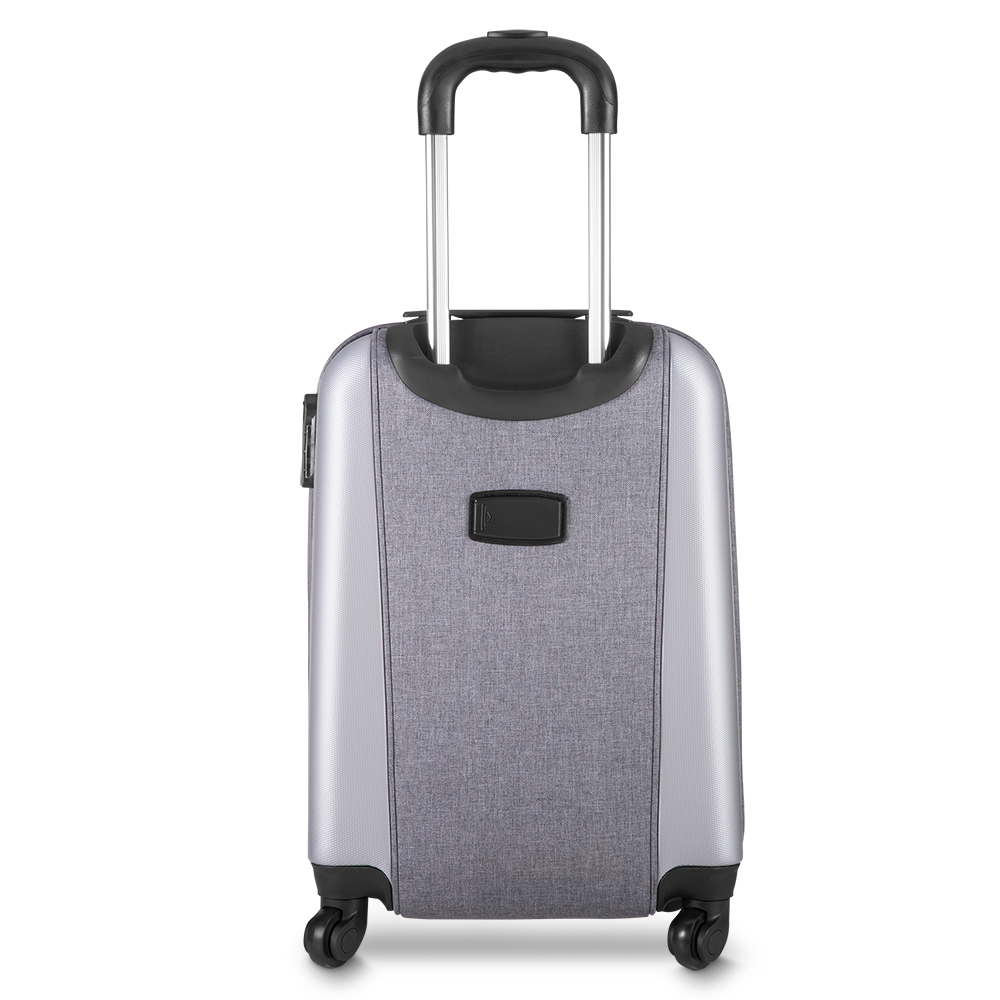 Mala elegante e resistente em ABS e tecido poliéster 600D two tone . 4 rodas duplas giratórias. Pega extensível em metal, com mola.