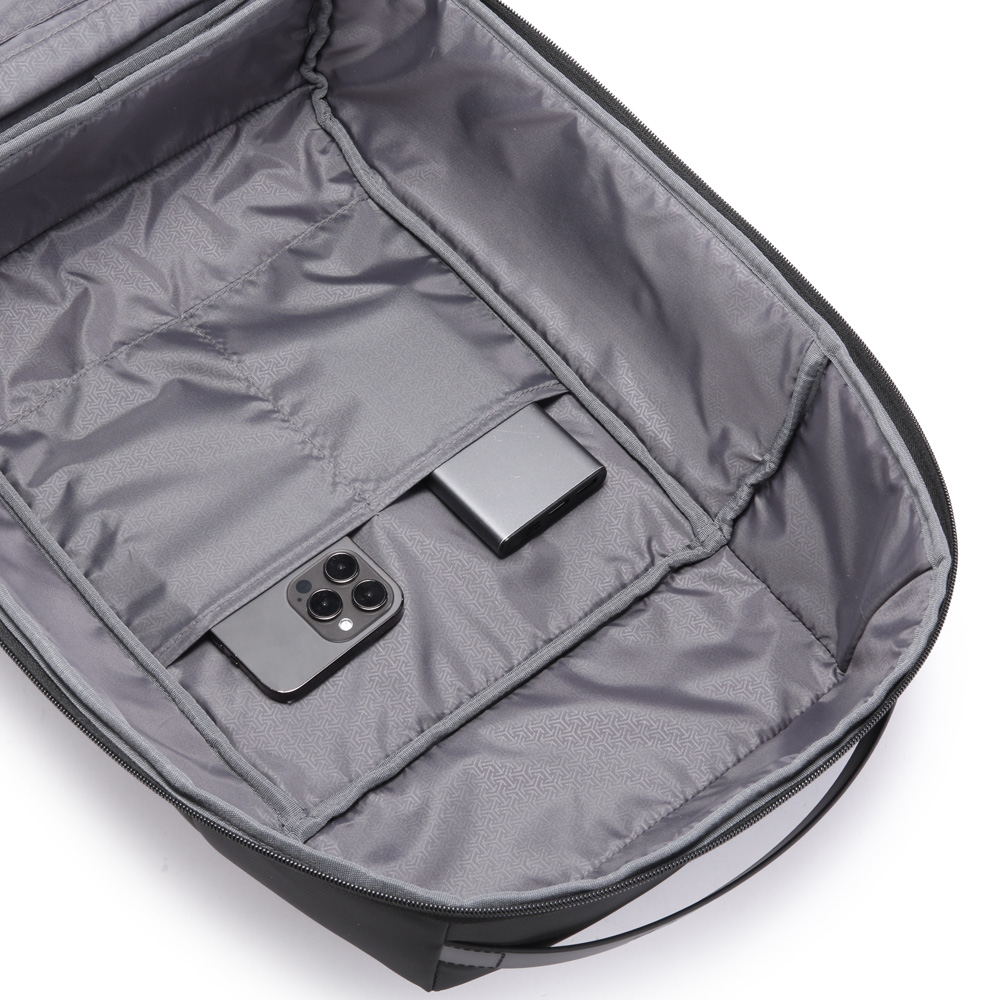 Mochila premium, produzida com poliéster acolchoado, alças de ombro acolchoadas, interior com divisórias, engate para mala de viagem, aceita notebook de até 15,6”.