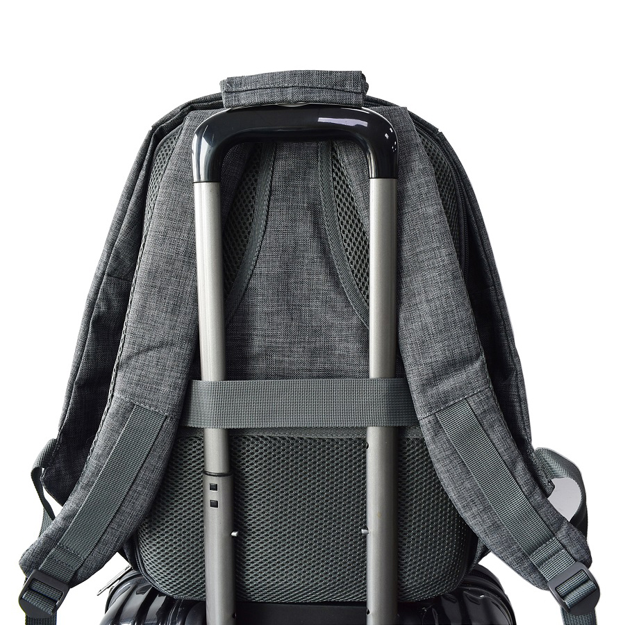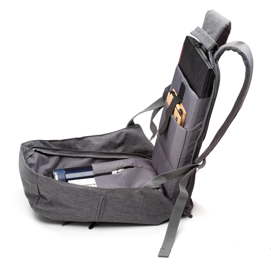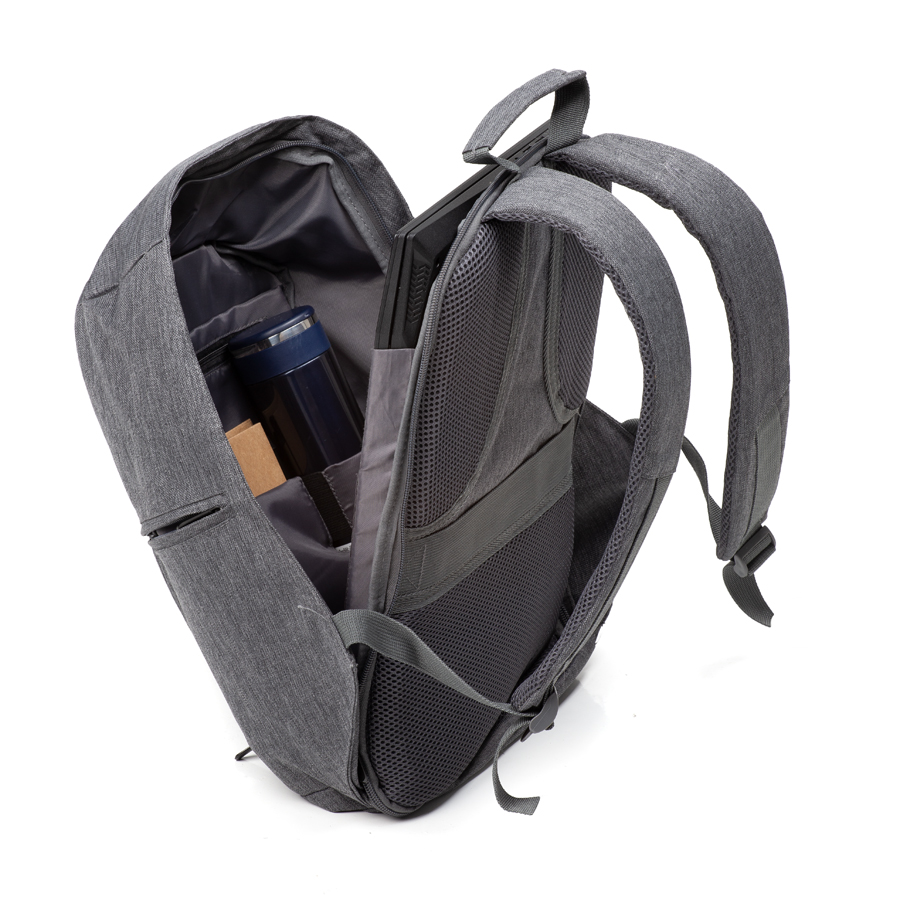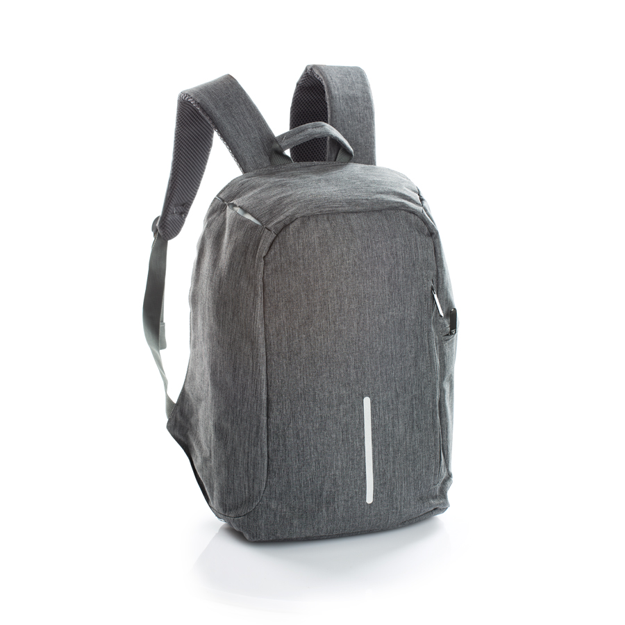 Mochila antifurto para notebook em poliester. Possui compartimento principal com zíper confeccionado na área traseira que impossibilita a abertura mesmo com a mochila nas costas, favorecendo a segurança e mantendo seus objetos de valor seguros. Este compartimento principal, alem do amplo espaço interno, conta com duas divisórias almofadadas, uma para notebook de até 15,6 “ e outra para tablet. Além de uma alça interna com velcro garantindo maior segurança. Pequenos bolsos organizadores, um deles inclusive com zíper. Possui um bolso frontal com fechamento em ziper vertical e um lateral também com fechamento em zíper. Possui uma faixa na parte de trás para encaixe no carrinho da mala de viagem. Alças e costas espumadas com regulador, proporcionando maior conforto para os ombros. (14530)