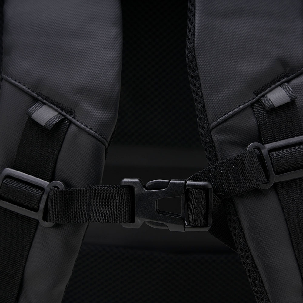 Mochila confeccionada em material sintético (imitação de couro) com compartimento para notebook até 15,6 polegadas. Contém um compartimento grande com divisórias para documentos, eletrônicos, Notebook até 15,6 polegadas e tablet. Dois compartimentos frontais, sendo um com divisórias para documentos, eletrônicos e caneta. Um bolso traseiro oculto. Tecido Impermeável. Dois bolsos laterais e adaptador USB externo com cabo acoplado, permitindo a conexão de um carregador portátil de dentro da mochila e transferência da carga para o lado externo, ocultando o carregador e viabilizando a utilização do celular durante o processo. Contém zíperes com pegadores plásticos, alça de mão em nylon, alças para as costas ajustáveis com revestimento espumado antitranspirante.