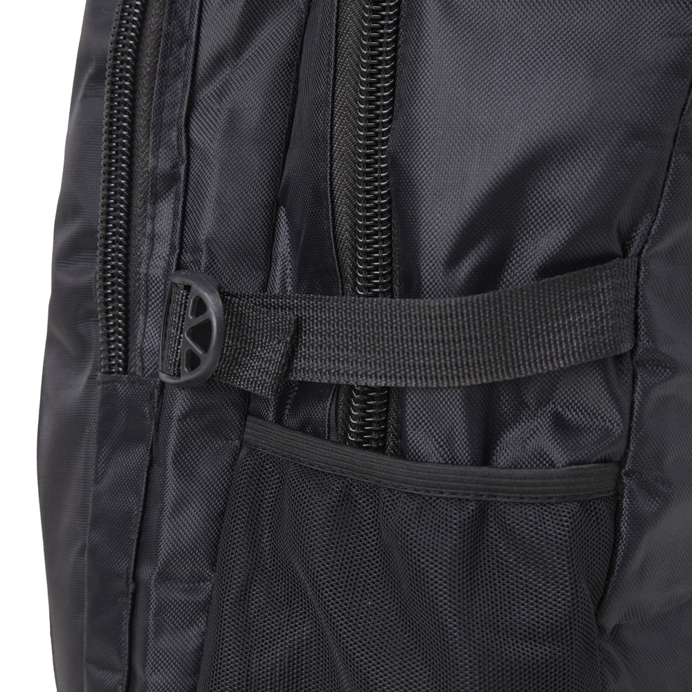 Descrição: Mochila de nylon 42 litros com dois compartimentos e bolsos laterais em malha. Possui fivelas laterais para regulagem de tamanho e duas alças de mãos, sendo uma delas reforçada com pegador plástico.