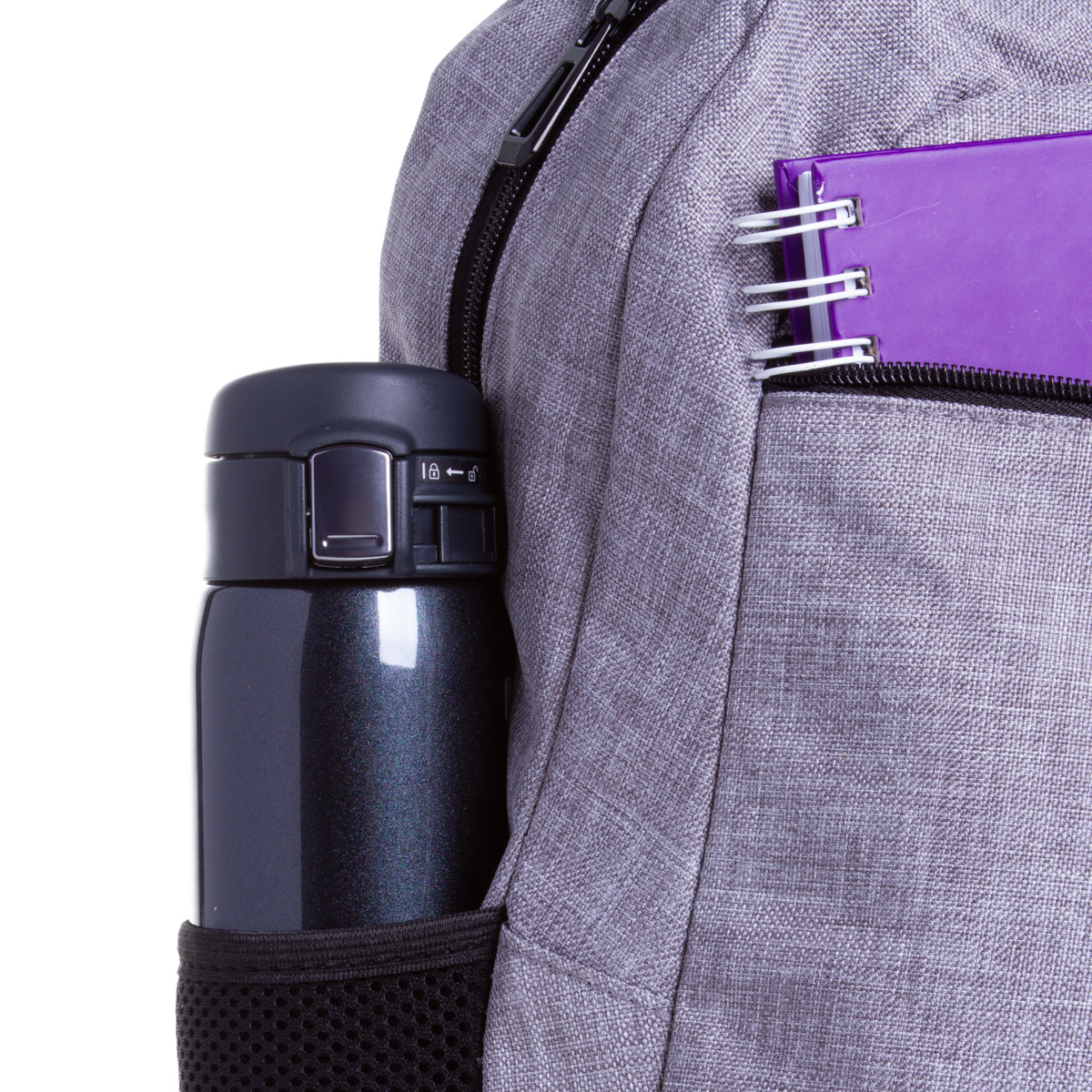 Mochila para notebook, em poliéster 600d. Possui dois compartimentos. Compartimento posterior, com abertura em zíper duplo, amplo espaço interno com divisória almofadada para notebook de até 15,6”. Compartimento frontal com fecho em zíper e dois bolsos laterais telados, para guardar pequenos objetos. Alça de costas espumada com regulador, proporcionando maior conforto para os ombros. Alças de mão e costas espumadas.