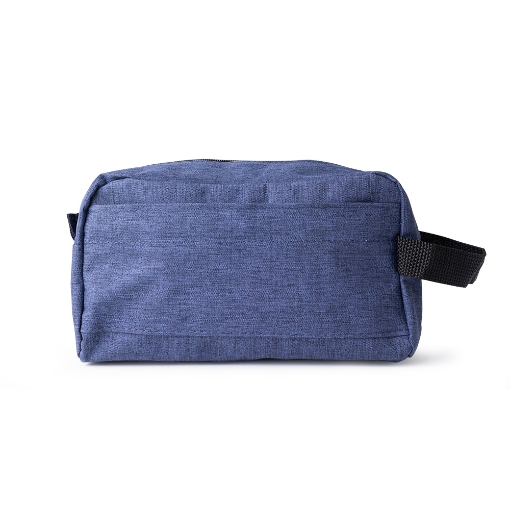 Descrição: Necessaire de nylon com alça lateral. Possui compartimento principal superior e outro frontal.