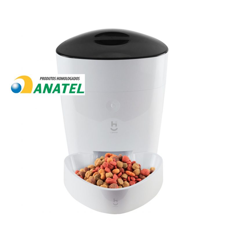 Controla a alimentação do pet remotamente pelo smartphone de forma inteligente e personalizada para cada animal, fazendo 10 programações de refeições por dia com até 12 porções de 15 gramas. Indicado para animais de até 10 quilos, a base do Alimentador, onde se coloca a ração, aceita até 4 litros de ração seca, que precisa ser de 10 mm de tamanho no máximo.