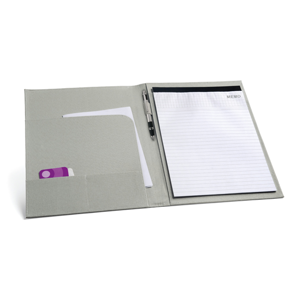 Pasta A4. 600D. Bloco: 20 folhas pautadas. Esferográfica não inclusa. 240 x 325 x 15 mm