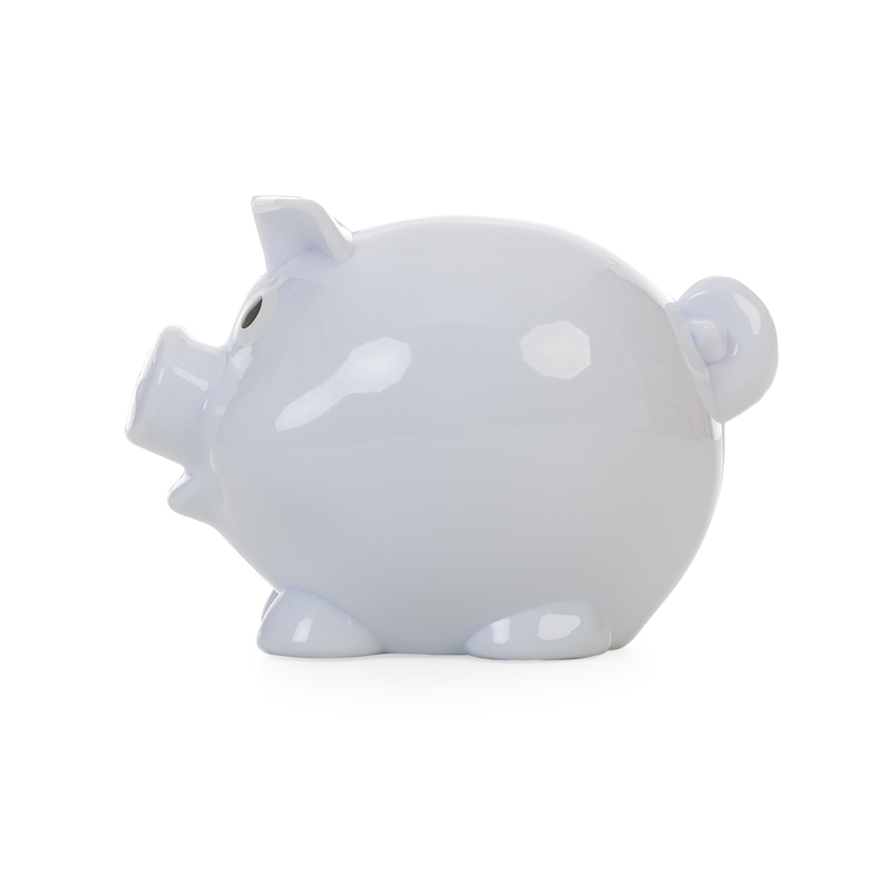 Descrição: Cofre plástico resistente formato porquinho na cor branca. Para abri-lo basta rotacionar o compartimento na parte inferior conforme indicam as setas.