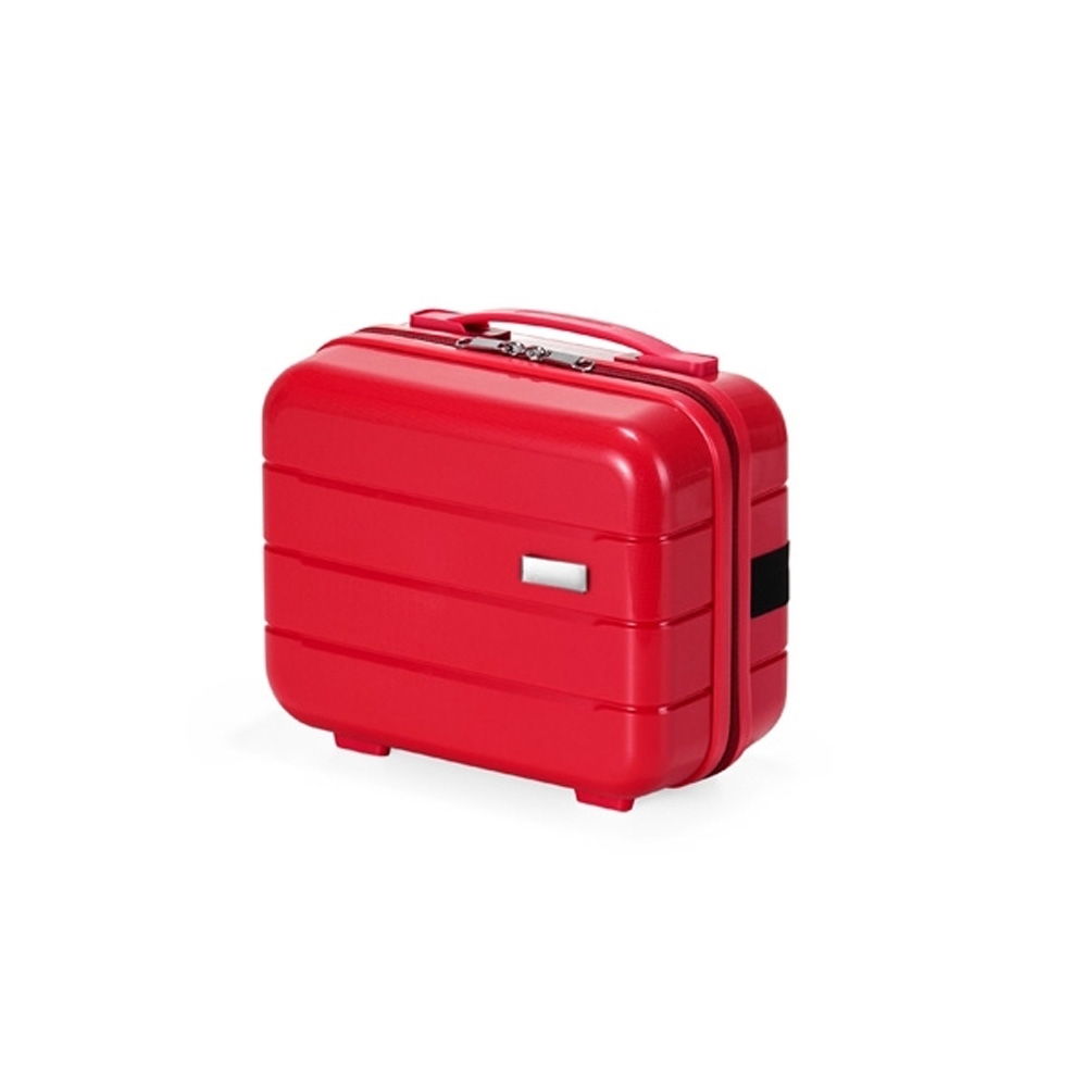 Descrição: Frasqueira de plástico (casca dura). Possui compartimento interno, elástico de segurança, alça para encaixe em malas de viagem e 4 apoios para maior estabilidade. Acompanha placa de personalização.