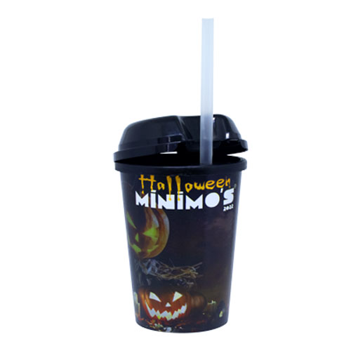 Copo plástico caldereta com personalização em In Mold Label sem limite de cores. Material: PP Dimensões: 8,8 cm diâmetro da boca / 6,5 cm diâmetro do fundo / 11,3 cm altura Capacidade: 450 ml