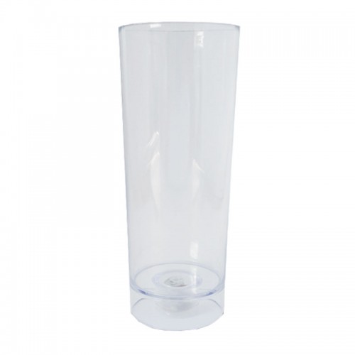 Material: Plástico PS cristal Capacidade: 330 ml Medidas: 6 cm de diâmetro (boca), 5,9 cm de diâmetro (base) e 16 cm de altura Peso: 55 gramas Embalado em saco plástico individual opção para personalização.