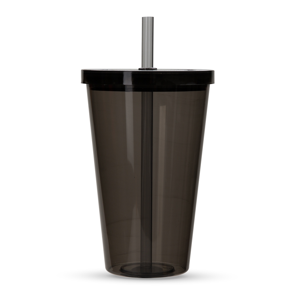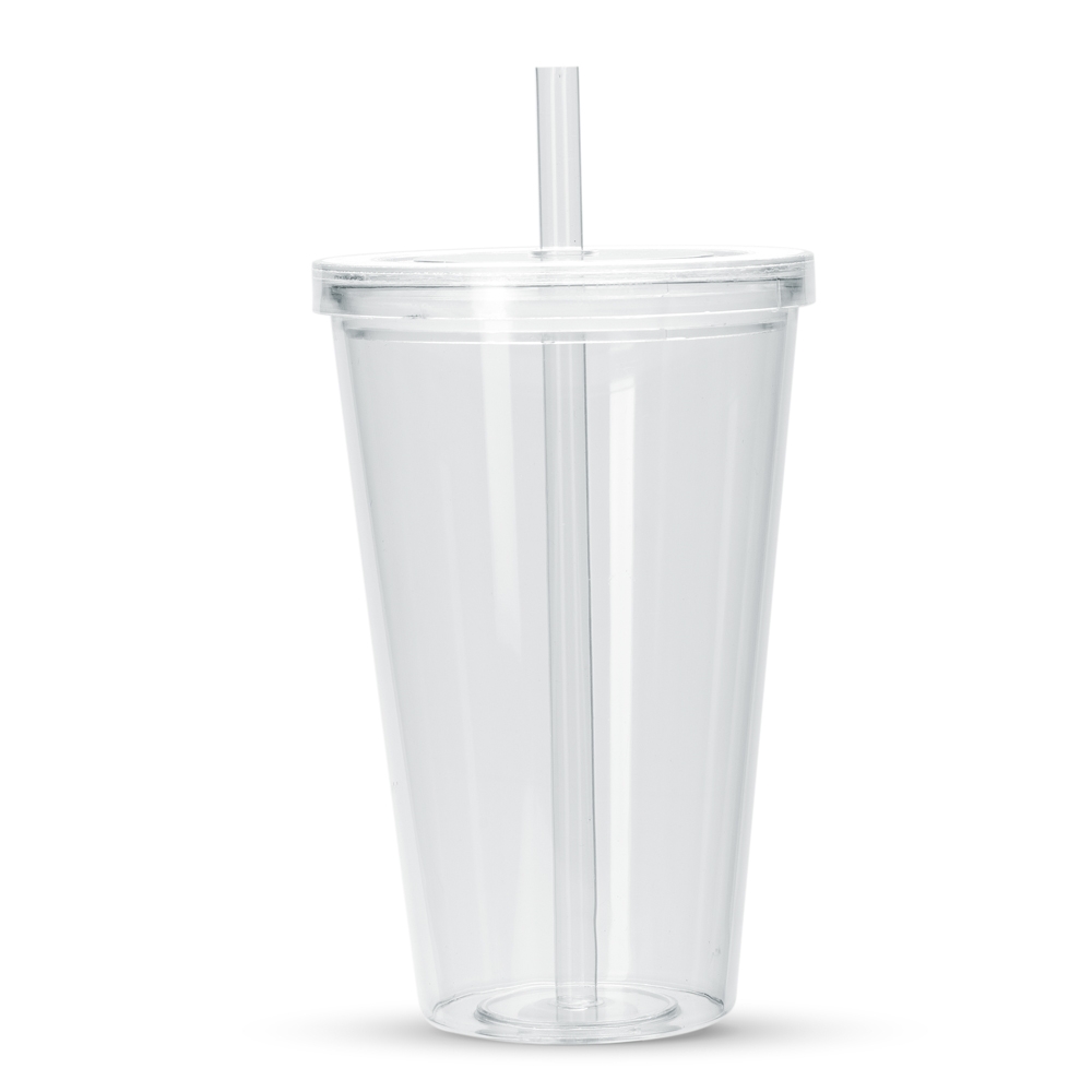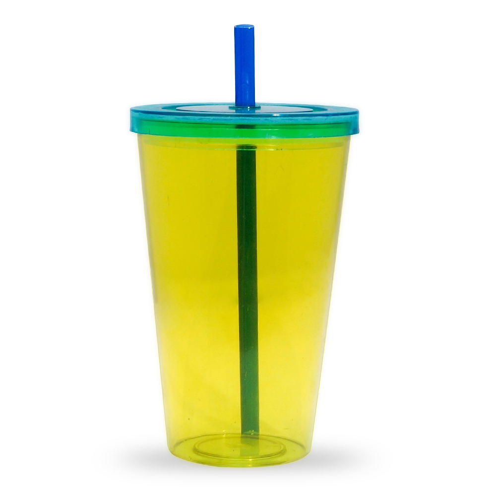 Copo plástico de 1 litro com tampa e canudo. Material plástico resistente translúcido, acompanha canudo rígido.