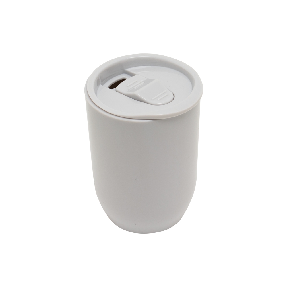 Descrição: Copo plástico 350ml com tampa de pressão. Tampa com acesso e trava de segurança para o bocal.