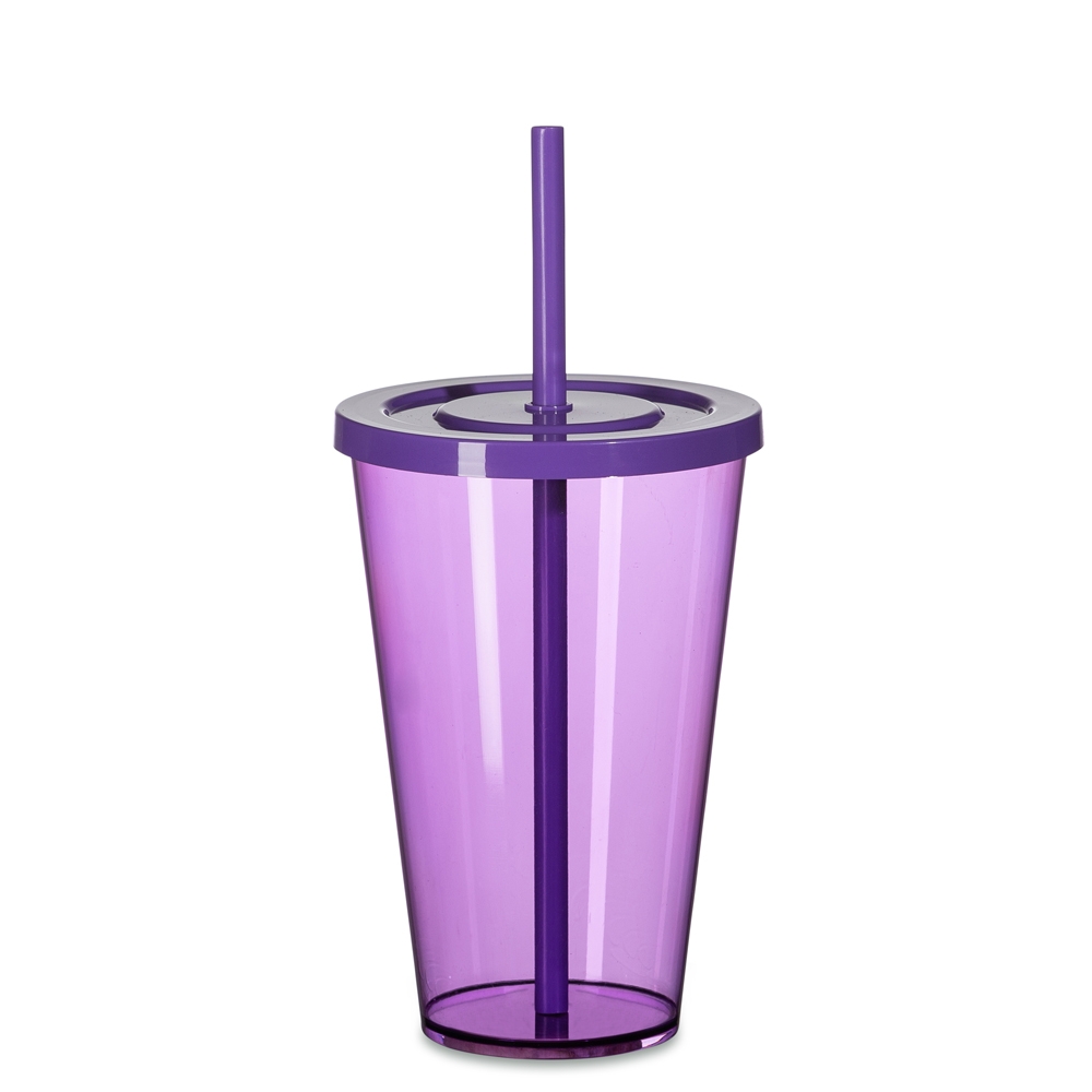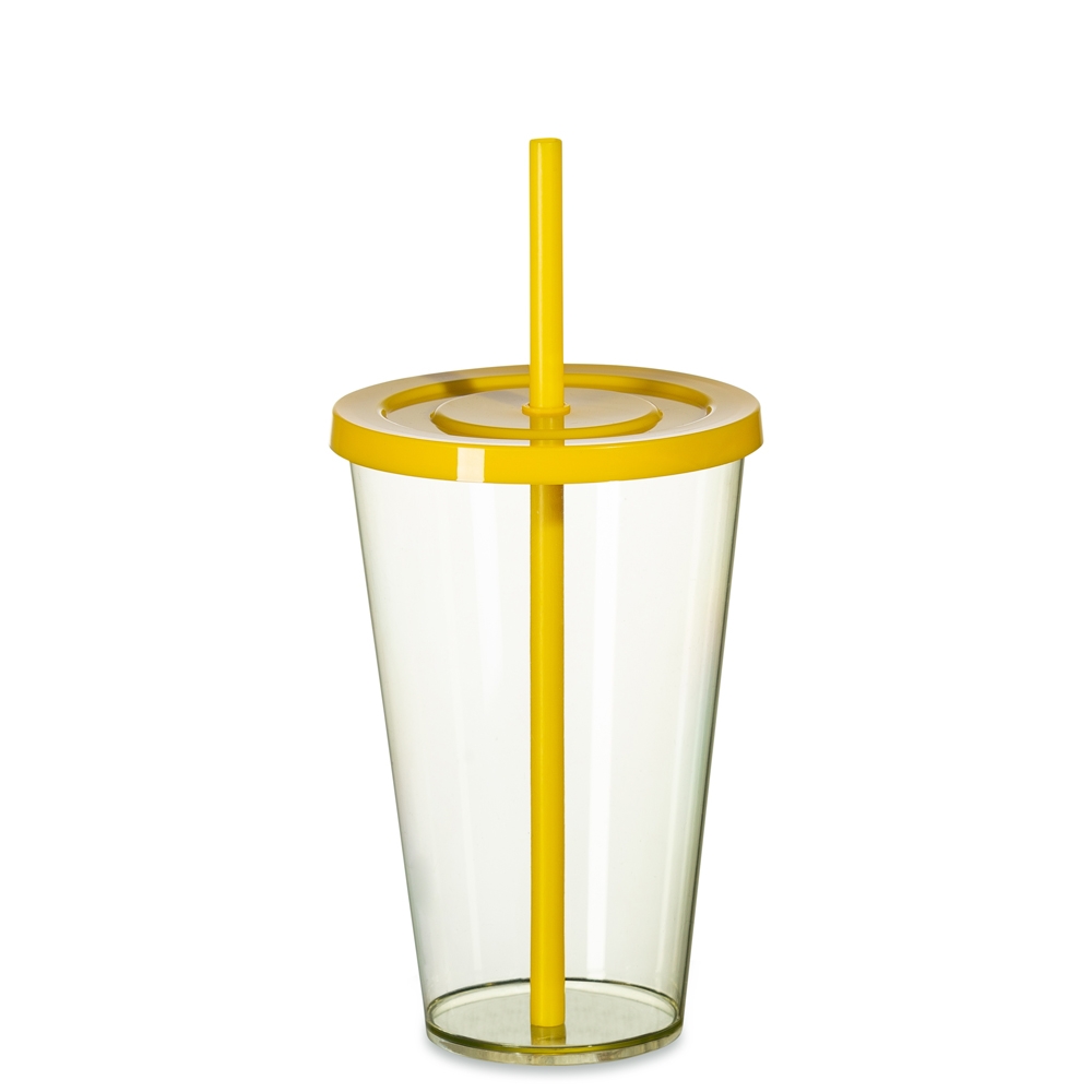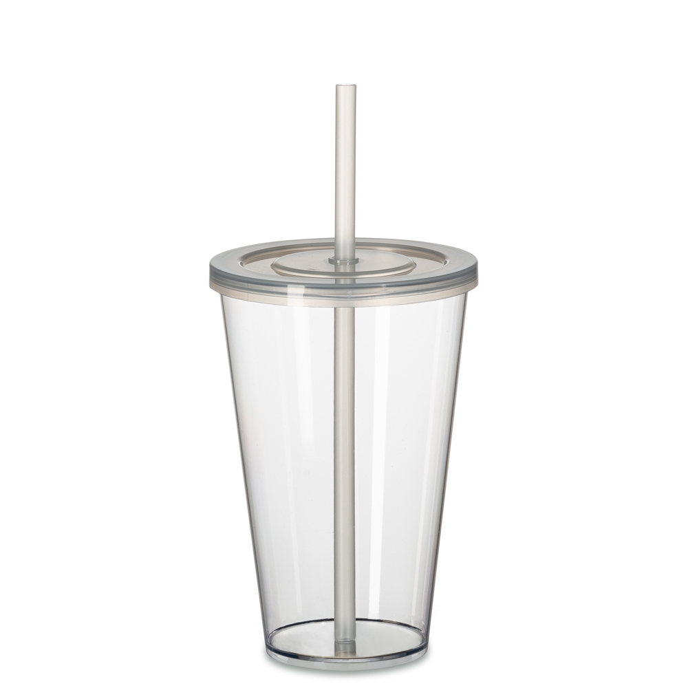 Copo plástico 650 ml com tampa e canudo, pintura transparente e tampa com pintura leitosa.