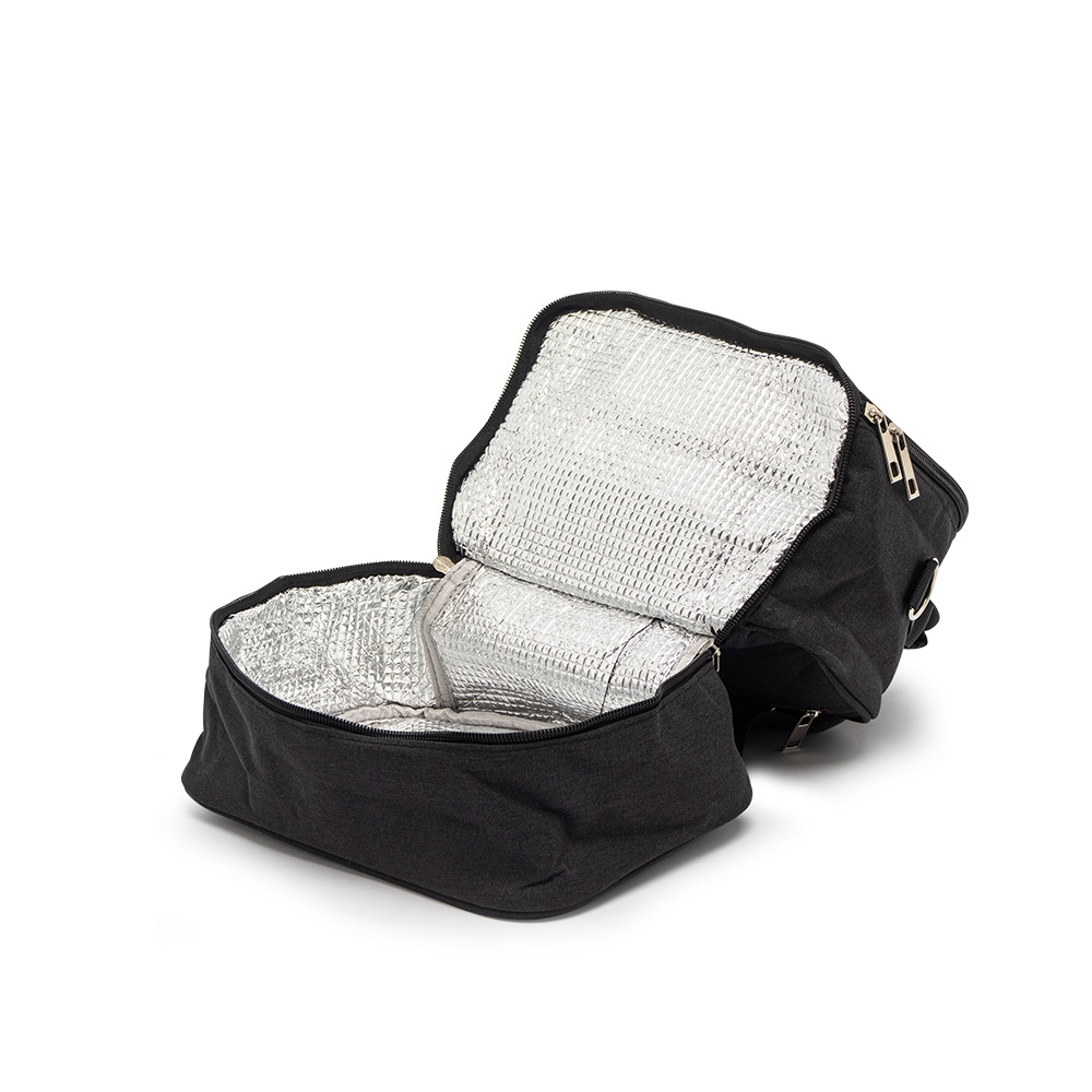Descrição: Bolsa térmica dupla em nylon com dois compartimentos térmicos isolados, capacidade de 7 litros. Contém bolso traseiro com zíper, alça de mão e alça para as costas.
