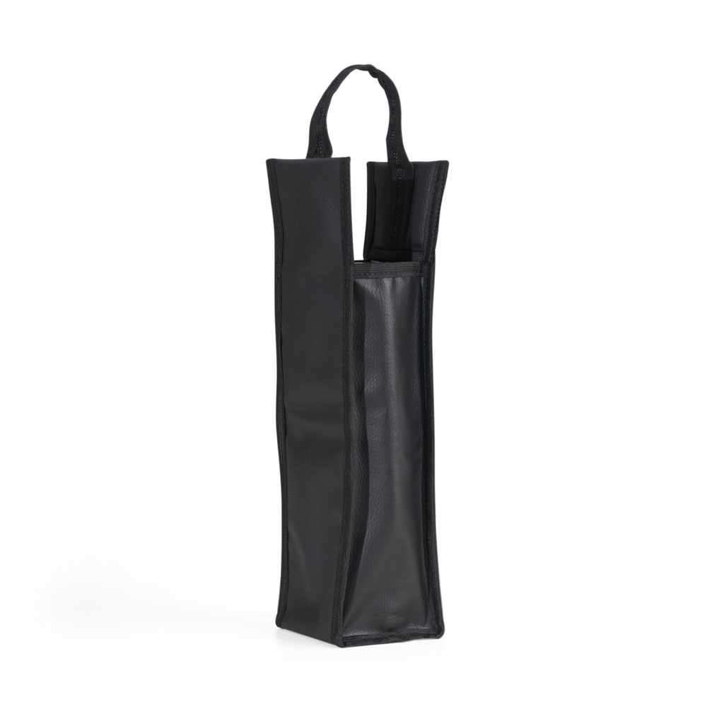 Descrição: Porta vinho térmico de material sintetico (imitação de couro) com alça de nylon.