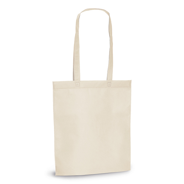 Sacola. Non-woven: 80 g/m². Termo-selado. Alças de 75 cm. 380 x 415 x 85 mm